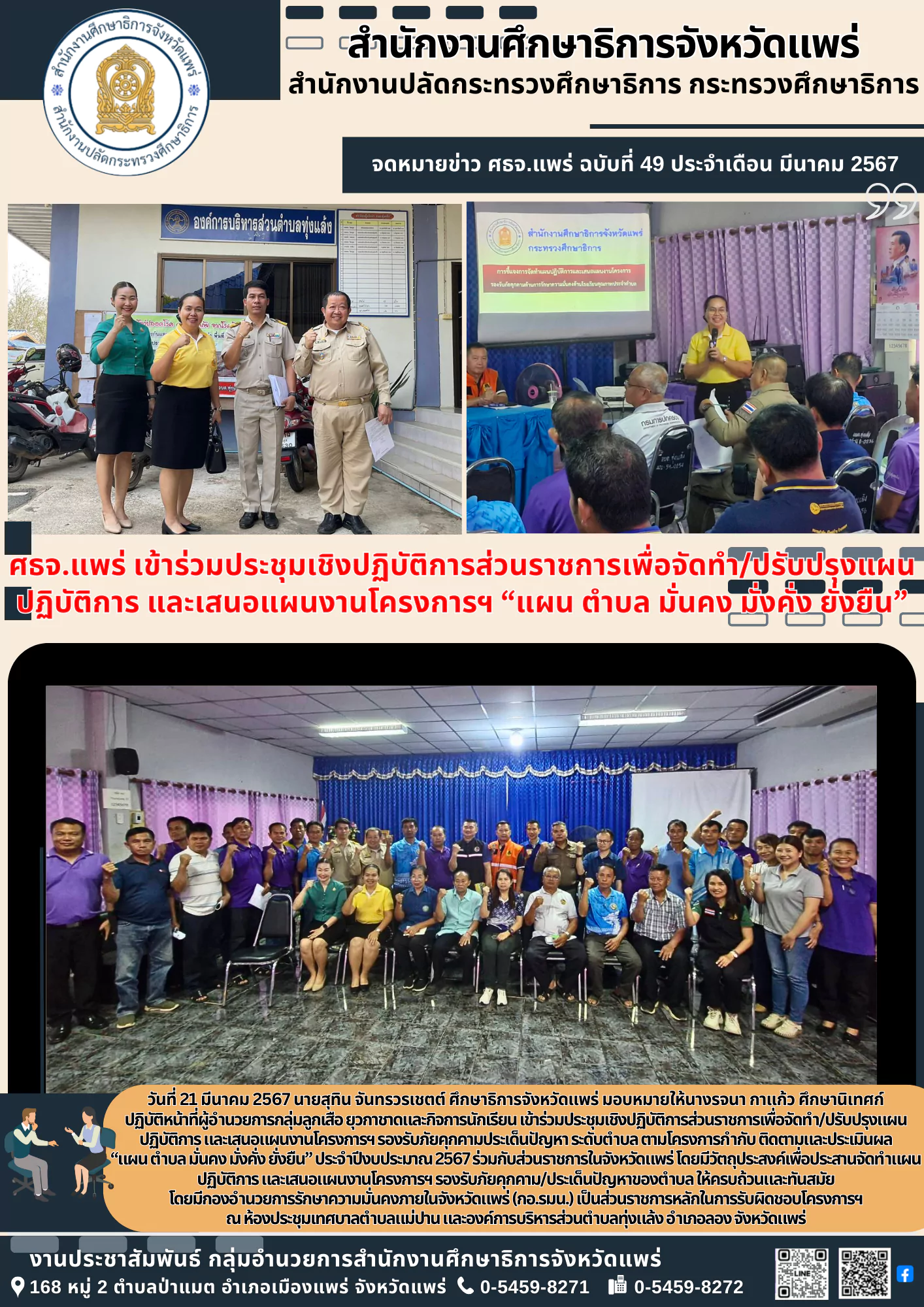การตรวจติดตามนโยบายการจัดการเรียนการสอนในสถานการณ์การแพร่ระบาดของโรคติดเชื้อไวรัสโคโรน่า ๒๐๑๙ (COVID-19) ณ จังหวัดอ่างทอง