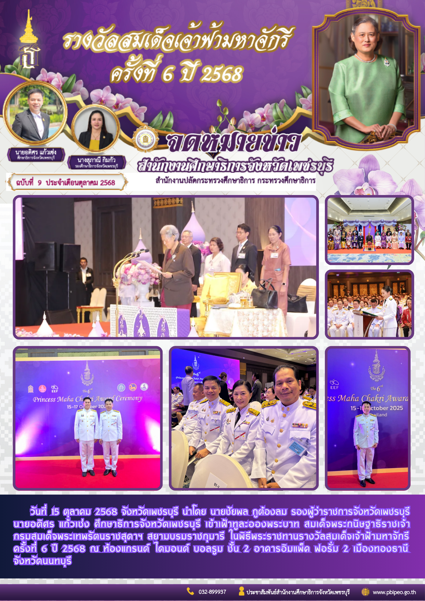 16 ต.ค. 68 เข้าเฝ้าทูละอองพระบาท สมเด็จพระกนิษฐาธิราชเจ้า กรมสมเด็จพระเทพรัตนราชสุดาฯ สยามบรมราชกุมารี ในพิธีพระราชทานรางวัลสมเด็จเจ้าฟ้ามหาจักรี ครั้งที่ 6 ปี 2568