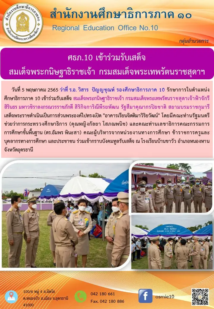 05 พ.ค. 65 ศึกษาธิการภาค 10 เข้าร่วมรับเสด็จ สมเด็จพระกนิษฐาธิราชเจ้า กรมสมเด็จพระเทพรัตนราชสุดาฯ สยามบรมราชกุมารี