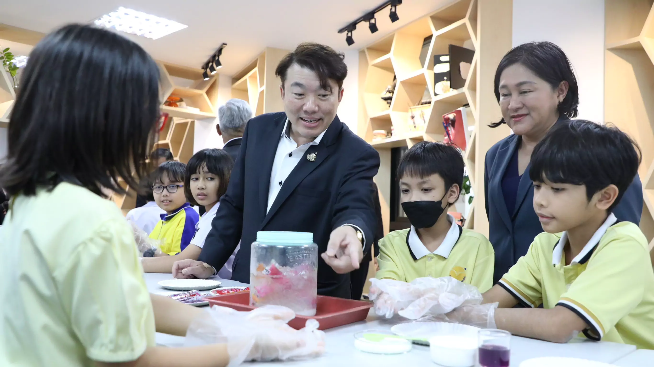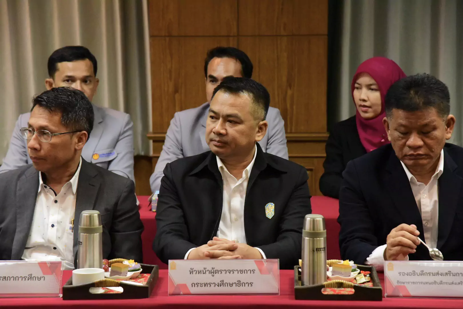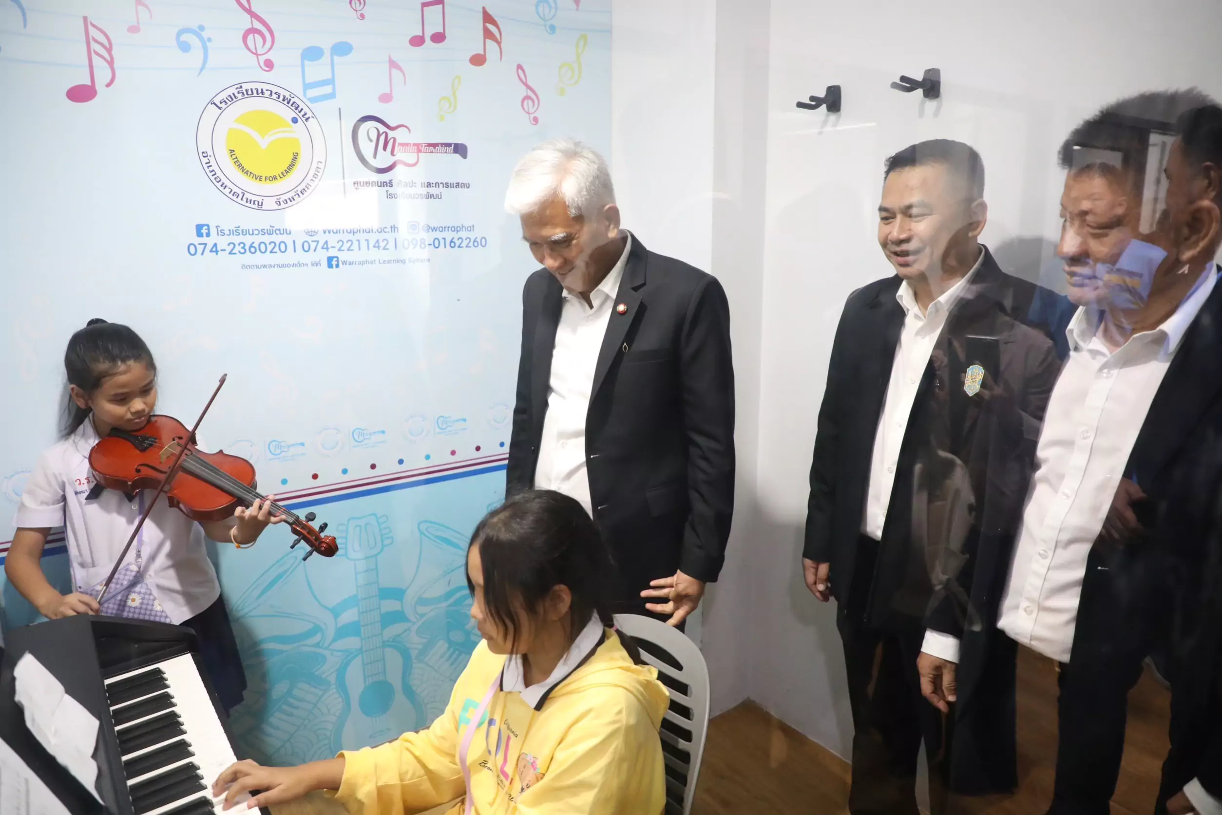 จากนั้น ผู้ช่วยรัฐมนตรีประจำ ศธ. และคณะ ตรวจเยี่ยมการจัดการเรียนการสอนตามนโยบาย “เรียนดี มีความสุข” ของ พลตำรวจเอก เพิ่มพูน ชิดชอบ รมว.ศธ. ณ โรงเรียนวรพัฒน์ อ.หาดใหญ่ จ.สงขลา สังกัด สำนักงานคณะกรรมการส่งเสริมการศึกษาเอกชน จัดการเรียนการสอนตั้งแต่ระดับอนุบาล – ป.6 แบบ 2 ภาษา ซึ่งเน้นการนำหลักการเรียนรู้แบบนำตนเอง (Active Learning) เป็นพื้นฐานในการออกแบบหลักสูตร จัดประสบการณ์ จัดการเรียนรู้และกิจกรรมพัฒนาผู้เรียน เน้นการพัฒนาสมรรถนะของสมอง (Executive Function: EF) เพื่อพัฒนาพื้นฐานการคิดและการใช้ชีวิตที่สำเร็จ โดยมีเป้าหมายให้ผู้เรียนเกิดสมรรถนะหลักที่จำเป็นสำหรับการทำงาน การแก้ปัญหา และการดำรงชีวิต