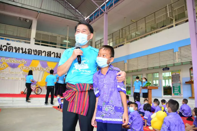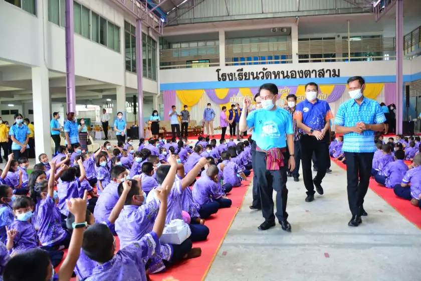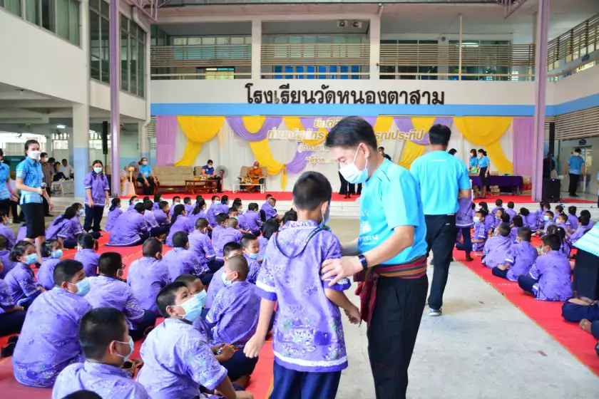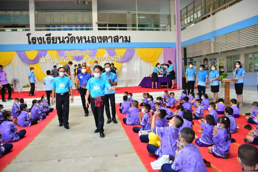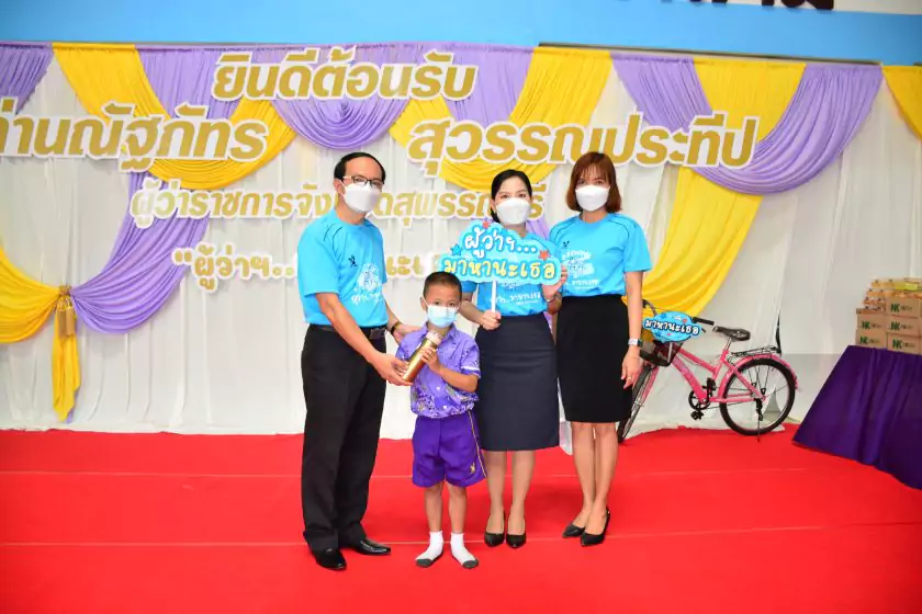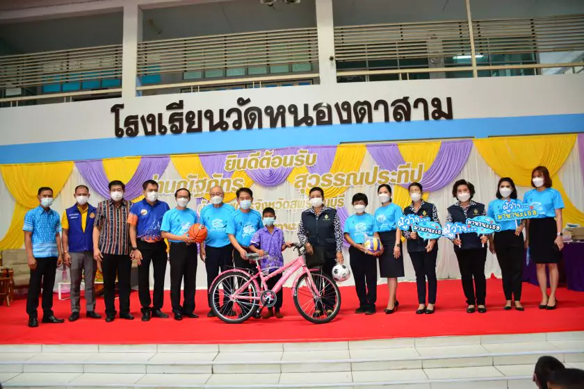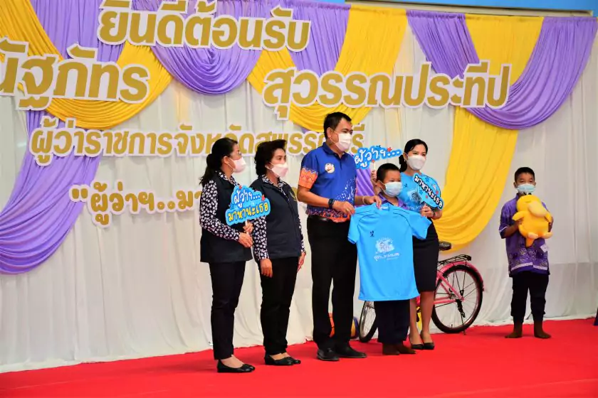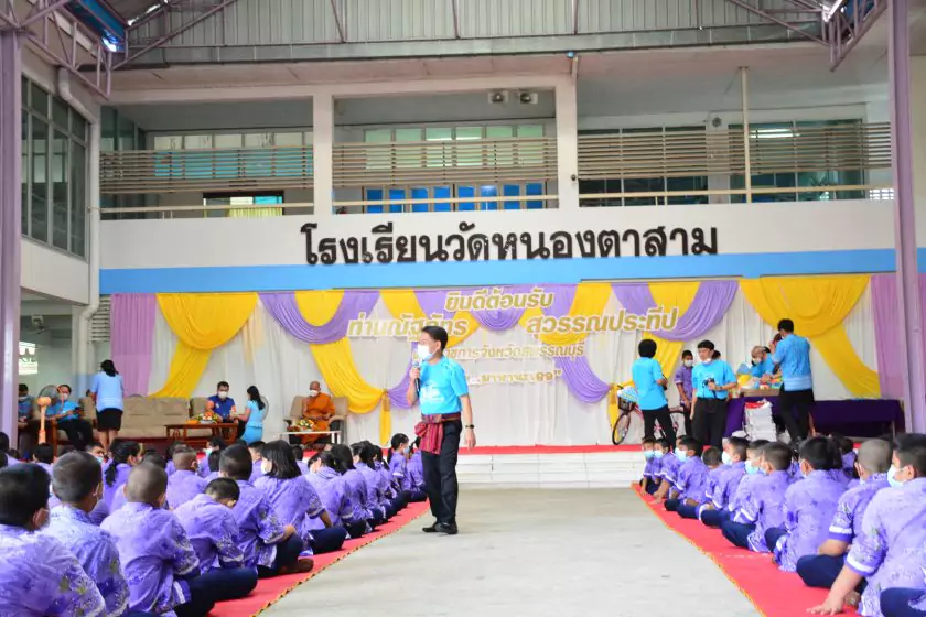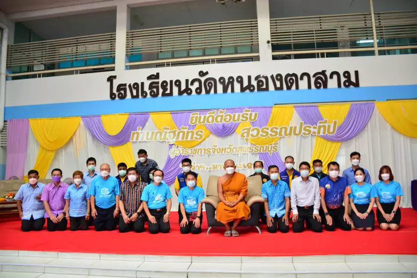 วันศุกร์ที่ ๑๘ พฤศจิกายน ๒๕๖๕ นายณัฐภัทร สุวรรณประทีป ผู้ว่าราชการจังหวัดสุพรรณบุรี ลงพื้นที่จัดกิจกรรม“ผู้ว่าฯ มาหานะเธอ” ณ โรงเรียนวัดหนองตาสาม โดยมี ดร.กอบภณ แสงสมบัติ ศึกษาธิการจังหวัดสุพรรณบุรี ดร.พัฒนาพร ไทยพิบูลย์ และคณะข้าราชการในสังกัดสำนักงานศึกษาธิการจังหวัดสุพรรณบุรี ร่วมทำหน้าที่เลขานุการ พร้อมกันนี้ นางนภัสสร สุวรรณประทีป นายกเหล่ากาชาดจังหวัดสุพรรณบุรี นายอำเภออู่ทอง ผู้บริหารการศึกษาสำนักงานเขตพื้นที่การศึกษาประถมศึกษาสุพรรณบุรี เขต ๒ หัวหน้าส่วนราชการและผู้นำชุมชนเข้าร่วมกิจกรรมเคารพธงชาติและสวดมนต์ ฝากข้อคิดในการพัฒนาโรงเรียนด้วยหลัก บ-ว-ร พัฒนานักเรียนโดยใช้โครงการเยาวชนคนดีศรีสุพรรณ ส่งเสริมและขยายผลไปสู่ครอบครัวคุณธรรม ท้ายสุด ผู้ว่าฯ ขอสัญญาจากนักเรียนไม่ยุ่งเกี่ยวกับยาเสพติด และให้เป็นเด็กดีของพ่อแม่ไม่ทำให้พ่อแม่เสียใจ