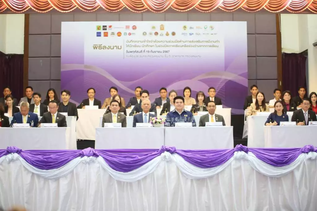 จึงได้จัดทำบันทึกความเข้าใจว่าด้วยความร่วมมือด้านการส่งเสริมการมีงานทำให้นักเรียน นักศึกษาในช่วงปิดภาคเรียนหรือช่วงว่างจากการเรียนขึ้น ระหว่าง “กระทรวงแรงงาน” โดย กรมการจัดหางาน กรมพัฒนาฝีมือแรงงาน กรมสวัสดิการและคุ้มครองแรงงาน สำนักงานประกันสังคม และ “กระทรวงศึกษาธิการ” โดย สำนักงานคณะกรรมการการศึกษาขั้นพื้นฐาน สำนักงานคณะกรรมการการอาชีวศึกษา ร่วมกับสถานประกอบการชั้นนำอีก 22 แห่ง พร้อมทั้งจัดเตรียมตำแหน่งงานทั่วประเทศ รองรับการทำงานของ นักเรียน นิสิต และ นักศึกษา จำนวนกว่า 10,000 อัตรา