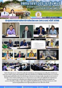 วันอังคารที่ 25 มีนาคม พ.ศ. 2568 สำนักงานศึกษาธิการจังหวัดระนอง จัดประชุมคณะกรรมการศึกษาธิการ จังหวัดระนอง (กศจ.ระนอง) ครั้งที่ 3/2568 ณ ห้องประชุมสำนักงานศึกษาธิการจังหวัดระนอง ผ่านสื่ออิเล็กทรอนิกส์ (ZOOM Cloud meetings) โดยมีนายสุพจน์ ภูติเกียรติขจร ผู้ว่าราชการจังหวัดระนอง เป็นประธานการประชุม ดร.ชูสิน วรเดช ผู้ตรวจราชการกระทรวงศึกษาธิการ รักษาการในตำแหน่งศึกษาธิการภาค 6 เป็นรองประธาน และนางรัชดาภรณ์ ปฏิบัติ ศึกษาธิการจังหวัดระนอง เป็นกรรมการและเลขานุการ พร้อมด้วยกรรมการผู้แทนหน่วยงานต่างๆ และผู้ทรงคุณวุฒิ ร่วมประชุมพิจารณา แนวทางการขับเคลื่อนการพัฒนาการตัดการศึกษาปฐมวัยในระดับพื้นที่จังหวัดระนอง ประจำปีงบประมาณ พ.ศ. 2568 และทบทวนคุณสมบัติของกรรมการผู้ทรงคุณวุฒิในคณะกรรมการศึกษาธิการจังหวัด