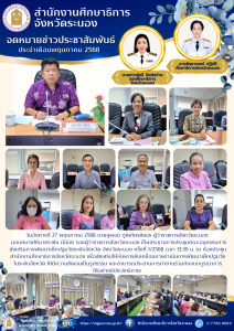 วันอังคารที่ 27 พฤษภาคม 2568 นายสุพจน์ ภูติเกียรติขจร ผู้ว่าราชการจังหวัดระนอง มอบหมายให้นายราชัน มีน้อย รองผู้ว่าราชการจังหวัดระนอง เป็นประธานการประชุมคณะอนุกรรมการส่งเสริมการพัฒนาเด็กปฐมวัยระดับจังหวัด จังหวัดระนอง ครั้งที่ 1/2568 เวลา 13.30 น. ณ ห้องประชุมสำนักงานศึกษาธิการจังหวัดระนอง เพื่อส่งเสริมให้เกิดการขับเคลื่อนการดำเนินการพัฒนาเด็กปฐมวัยในระดับจังหวัดให้มีความชัดเจนเป็นรูปธรรม และสามารถประสานการทำงานร่วมกันแบบบูรณาการได้อย่างมีประสิทธิภาพ