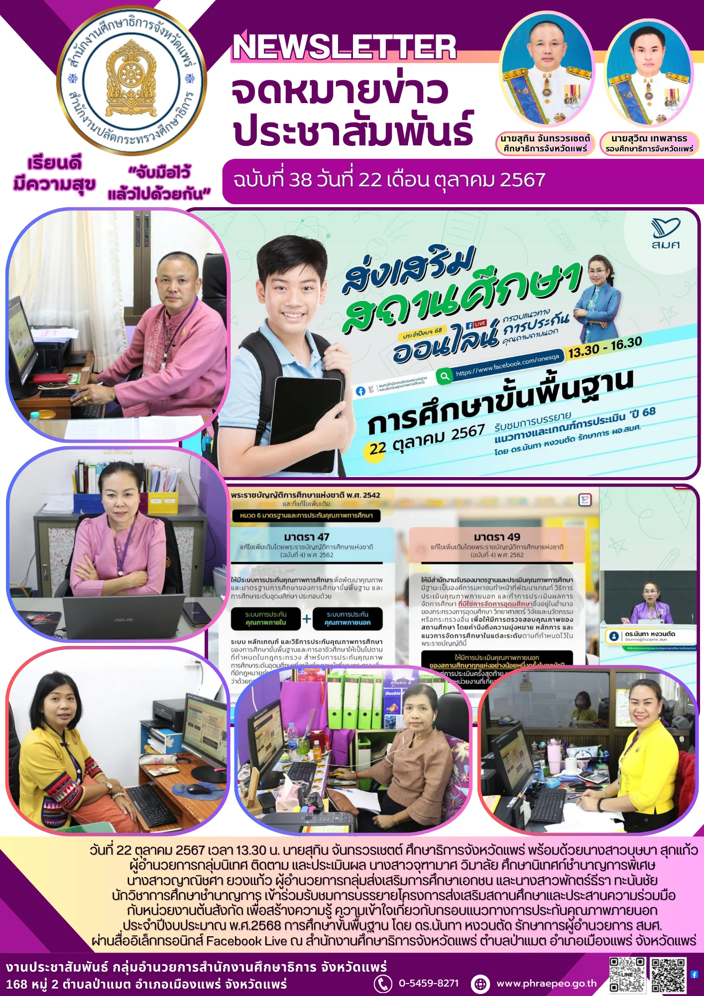 วันที่ 29 มีนาคม 2561 เวลา 09.00 น. ณ ห้องประชุมสิริสาธร สำนักงานศึกษาธิการจังหวัดน่าน อำเภอเมืองน่าน จังหวัดน่าน นายอดุล เทพกอม รองศึกษาธิการจังหวัดน่าน เป็นประธานในการประชุมคณะกรรมการดำเนินงานโครงการค่ายครอบครัวสุขสันต์สมานฉันท์สังคมไทย ครั้งที่ 1/2561 เพื่อวางแผนการจัดอบรมโครงการค่ายครอบครัวสุขสันต์สมานสันท์สังคมไทย ในวันที่ 10 พฤษภาคม 2561 ณ โรงเรียนซินจง อำเภอเมือง จังหวัดน่าน