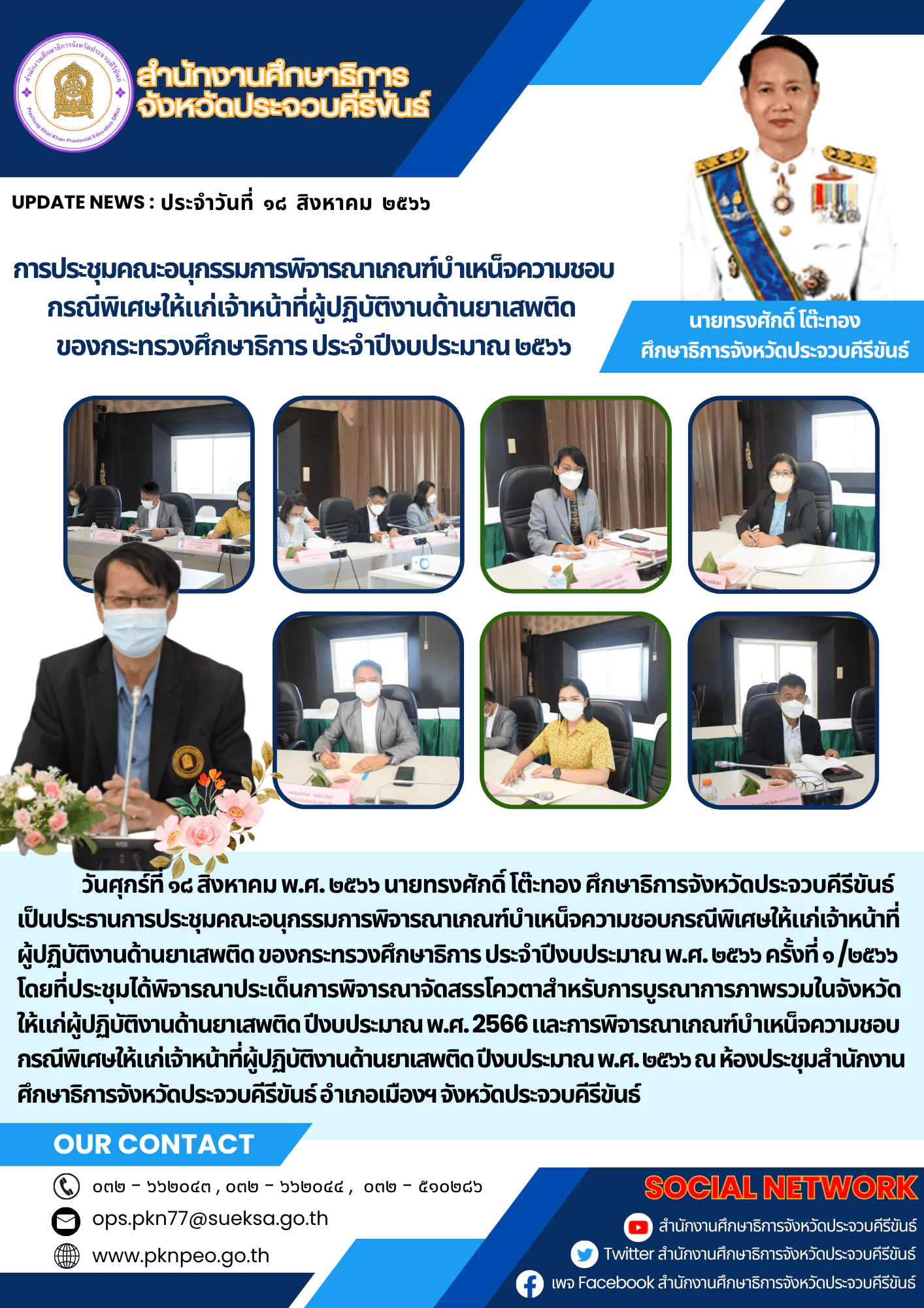 ในการนี้มีนายชูเกียรติ ด่านธนะทรัพย์ ศึกษาธิการจังหวัดน่าน เป็นประธานในพิธีเปิดการประชุม และนายอดุล เทพกอม รองศึกษาธิการจังหวัดน่าน พบปะผู้เข้าร่วมประชุม