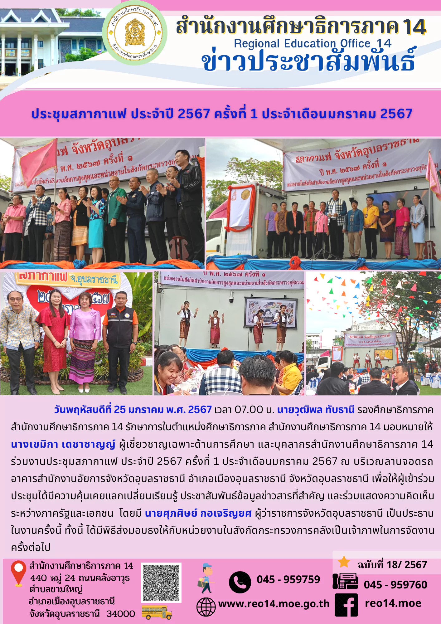 วันพุธที่ 13 มิถุนายน 2561 เวลา 07.00 น. สำนักงานศึกษาธิการจังหวัดพะเยา เป็นเจ้าภาพจัด “กาแฟยามเช้า” จังหวัดพะเยา