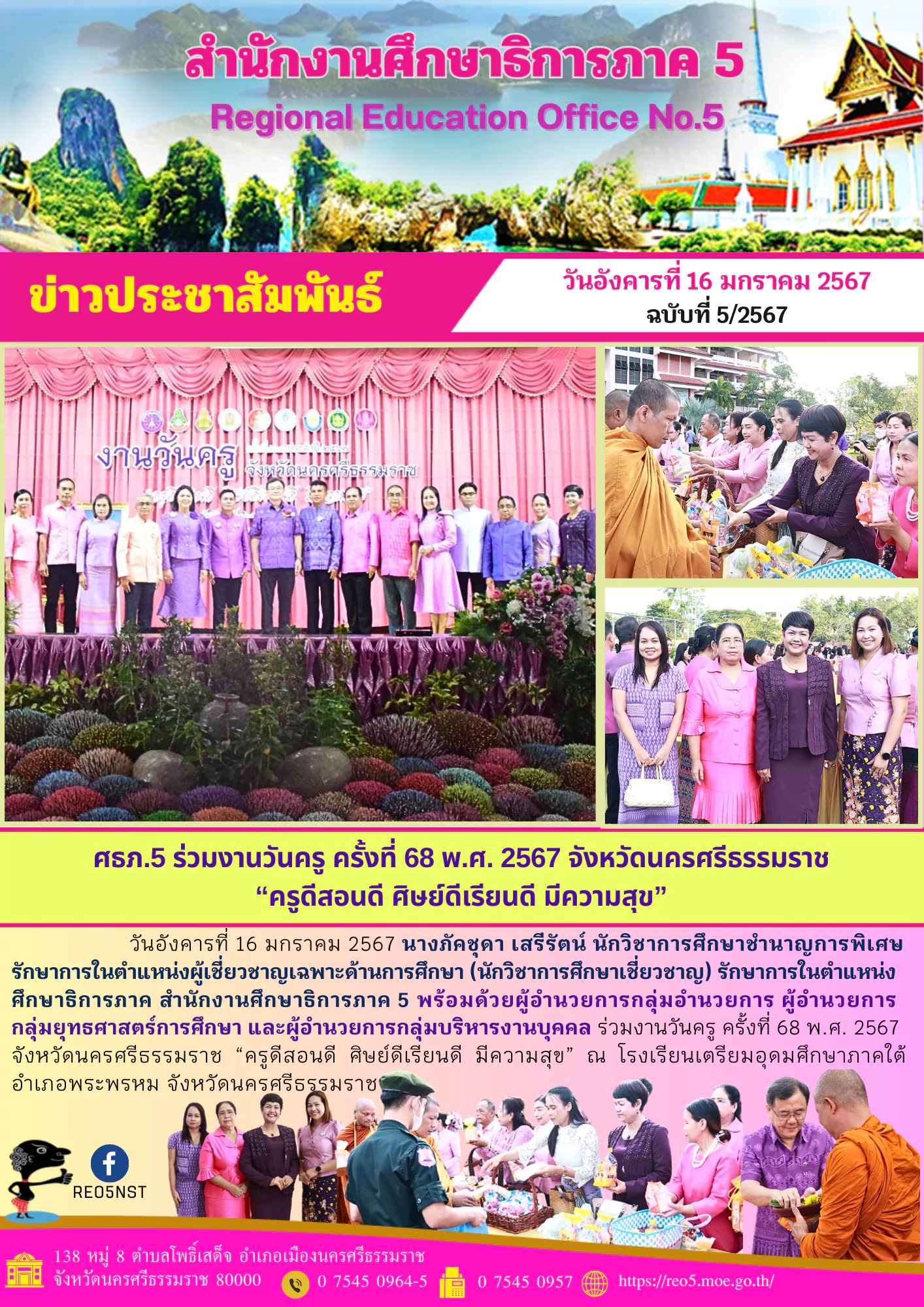 เมื่อวันที่ 12 กุมภาพันธ์ 2561 ว่าที่ ร.ต.สมชาย งามสุขสวัสดิ์ รองศึกษาธิการจังหวัดราชบุรี เป็นประธานในการประชุม การรายงานผลการตรวจราชการ ติดตามและประเมินผล การดำเนินงานตามนโยบายกระทรวงศึกษาธิการ รอบที่ 1 ประจำปี งบประมาณ 2561 เพื่อให้หน่วยงานที่เกี่ยวข้องบรรลุเป้าหมาย สอดคล้องกับยุทธศาสตร์ชาติ นโยบายรัฐบาล และนโยบายของกระทรวงศึกษาธิการ มีความโปร่งใส เป็นธรรม เป็นประโยชน์ ต่อทางราชการ มีคณะบุคลากรสำนักงานศึกษาธิการจังหวัดราชบุรี และส่วนราชการต่างๆในจังหวัดราชบุรีที่มีส่วนเกี่ยวข้องเข้าร่วมประชุม ณ ห้องประชุมราชาวดี ชั้น 3 สำนักงานศึกษาธิการภาค 4