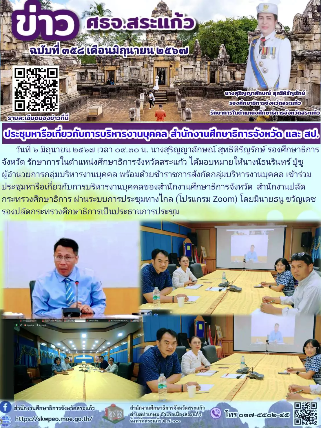 07 มิ.ย. 67 (ศธจ.สระแก้ว) เข้าร่วมประชุมหารือเกี่ยวกับการบริหารงานบุคคลของสำนักงานศึกษาธิการจังหวัด สำนักงานปลัดกระทรวงศึกษาธิการ