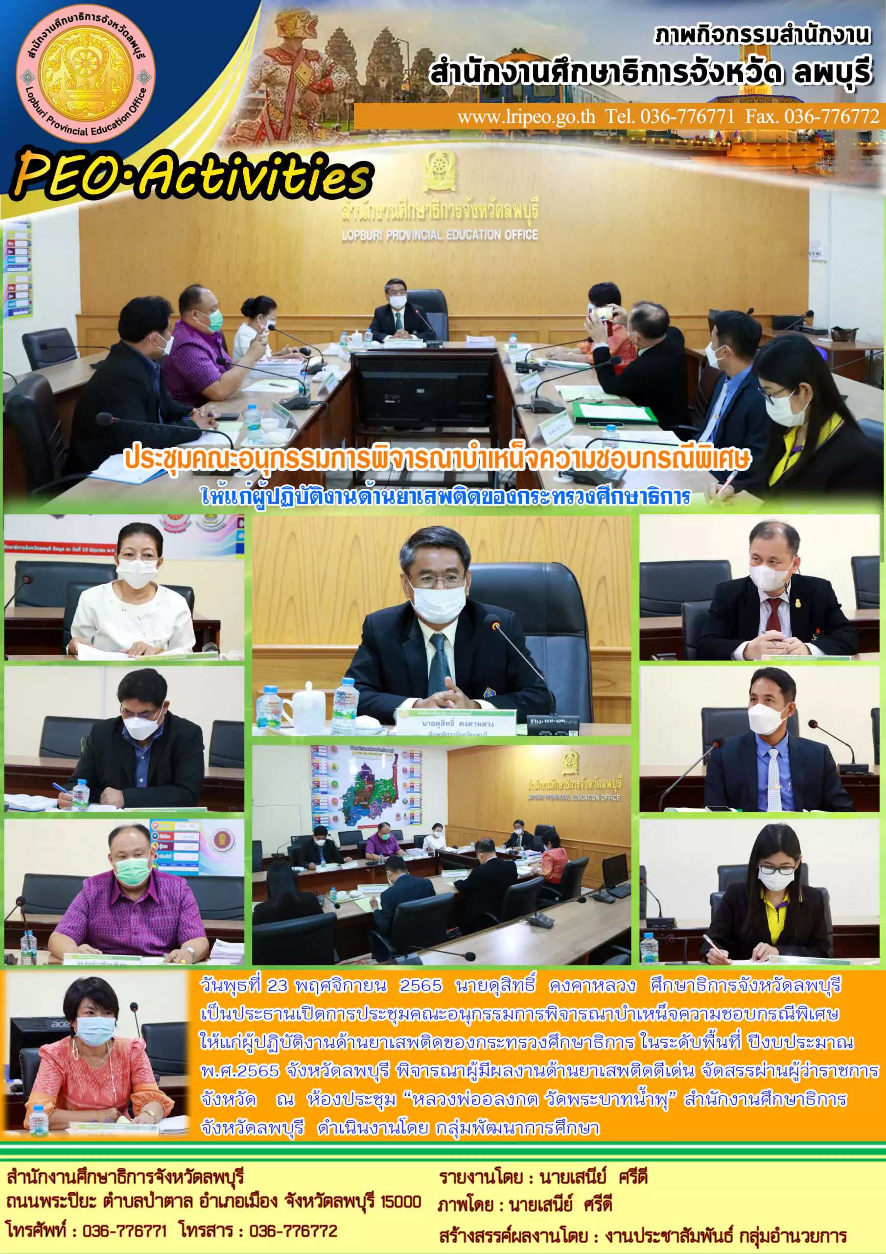 วันพุธที่ 23 พฤศจิกายน 2565 นายดุสิทธิ์ คงคาหลวง ศึกษาธิการจังหวัดลพบุรี