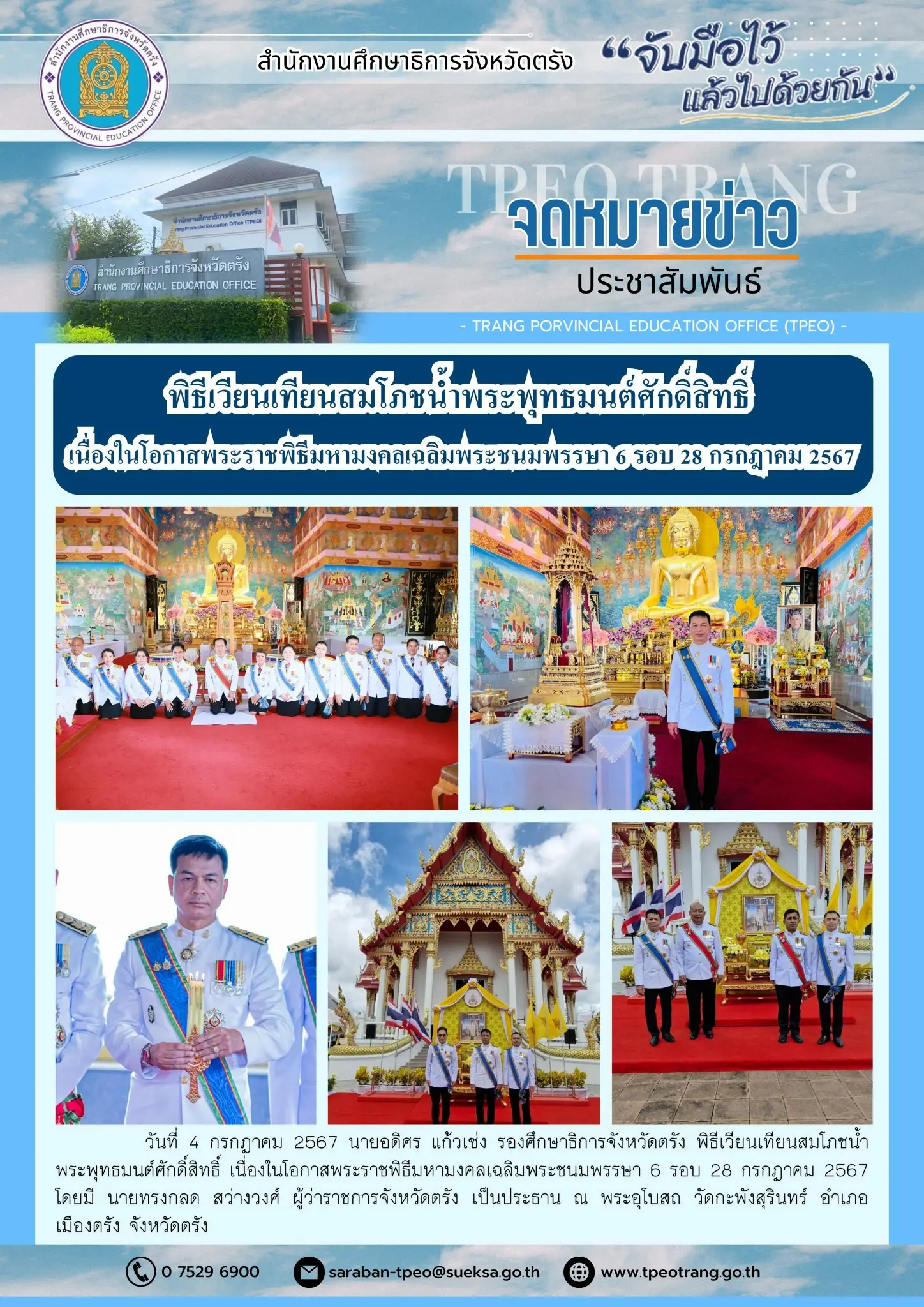 วันที่ 14 พฤศจิกายน 2560 นายธนาวัฒน์ คำราช รองศึกษาธิการจังหวัด รักษาราชการแทนศึกษาธิการจังหวัดลำปาง มอบหมายให้นางพิทยาภรณ์ อวัชนากร ผู้อำนวยการกลุ่มอำนวยการ ร่วมพิธีวางพานพุ่มดอกไม้สดเนื่องใน “วันพระบิดาแห่งฝนหลวง” ประจำปี 2560 ณ หอประชุมโรงเรียนเตรียมอุดมศึกษาพัฒนาการเขลางค์นคร