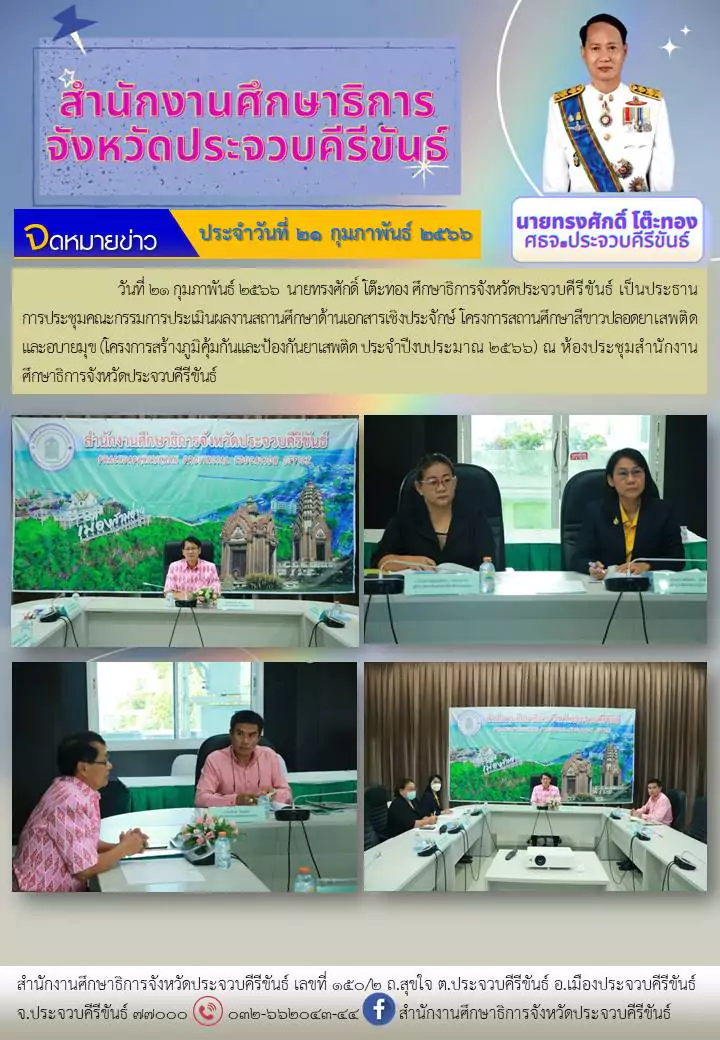 21 ก.พ. 66 การประชุมคณะกรรมการประเมินผลงานสถานศึกษาด้านเอกสารเชิงประจักษ์ โครงการสถานศึกษาสีขาวปลอดยาเสพติดและอบายมุข (โครงการสร้างภูมิคุ้มกันและป้องกันยาเสพติด ประจำปีงบประมาณ 2566)
