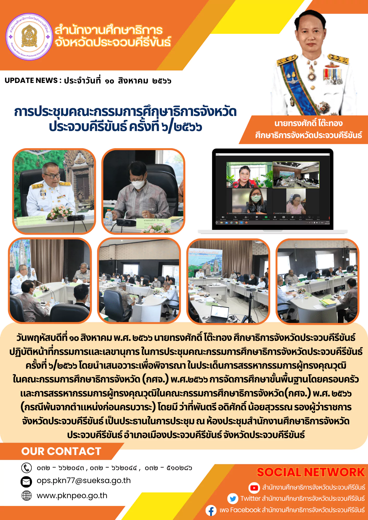 วันที่ 28 กรกฎาคม 2562 นายภิญโญ จันทรวงศ์ ศึกษาธิการจังหวัดสงขลา มอบหมายบุคลากรสำนักงานศึกษาธิการจังหวัดสงขลา ร่วมกิจกรรมเนื่องในโอกาสวันเฉลิมพระชนมพรรษาพระบาทสมเด็จพระวชิรเกล้าเจ้าอยู่หัว ประจำปี 2562 เพื่อน้อมสำนึกในพระมหากรุณาธิคุณและแสดงถึงความจงรักภักดี ดังนี้เวลา 07.00 น. บริเวณสี่แยกพระพุทธศรีสงขลานครินทร์ อำเภอเมือง จังหวัดสงขลา ร่วมพิธีเจริญพระพุทธมนต์และพิธีทำบุญตักบาตรข้าวสารอาหารแห้งแด่พระภิกษุสงฆ์ จำนวน 68 รูปเวลา 08.30 น. ณ หอประชุมเปรม 100 ปี โรงเรียนมหาวชิราวุธ อำเภอเมือง จังหวัดสงขลา ร่วมพิธีถวายสัตย์ปฏิญาณเพื่อเป็นข้าราชการที่ดีและพลังของแผ่นดิน