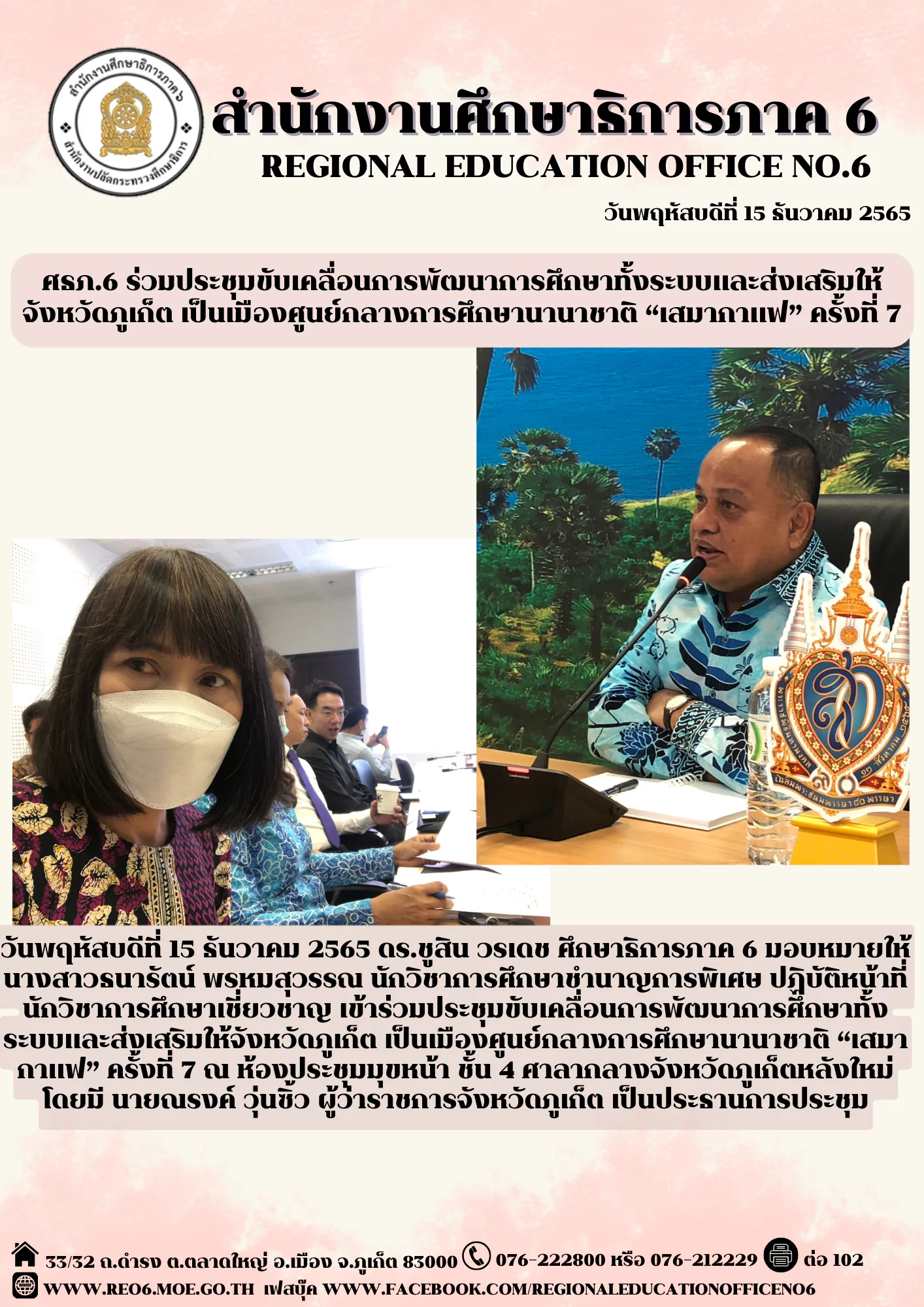 วันที่ 14 มีนาคม 2561 เวลา 13.30 น. สำนักงานศึกษาธิการจังหวัดสิงห์บุรี จัดประชุมคณะกรรมการศึกษาธิการจังหวัดสิงห์บุรี ครั้งที่ 2/2561 ซึ่งได้รับเกียรติจาก นายสุทธา สายวาณิชย์ ผู้ว่าราชการจังหวัดสิงห์บุรี เป็นประธานในการประชุม พร้อมด้วยคณะกรรมการและผู้เข้าร่วมประชุมที่เกี่ยวข้องได้ร่วมประชุมโดยพร้อมเพรียงกัน โดย ดร.สุเมธี จันทร์หอม ศึกษาธิการจังหวัดสิงห์บุรี ปฏิบัติหน้าที่เลขานุการคณะกรรมการฯ ได้ชี้แจงและร่วมอภิปรายในประเด็นต่างๆ ให้ที่ประชุมได้รับทราบ จำนวน 8 เรื่อง และมีเรื่องเพื่อพิจารณา จำนวน 15 เรื่อง ครอบคลุมทั้งในด้านการบริหารงานบุคคล การพัฒนาการศึกษาและการขับเคลื่อนยุทธศาสตร์ของหน่วยงานการศึกษา/สถานศึกษาในพื้นที่จังหวัดสิงห์บุรี โดยในการนี้ นายซ้อน สุริยวัฒนานนท์ ผู้อำนวยการโรงเรียนวิจิตรศึกษา ได้มอบผลิตภัณฑ์ฝีมือของนักเรียน (ไข่เค็มใบเตย) ให้แก่ประธาน/คณะกรรมการผู้เข้าร่วมประชุม และได้ร่วมรับชมการนำเสนอข้อมูลการดำเนินงานของศูนย์การศึกษาพิเศษประจำจังหวัดสิงห์บุรี ณ ห้องประชุมศูนย์การศึกษาพิเศษประจำจังหวัดสิงห์บุรี อำเภอเมือง จังหวัดสิงห์บุรี