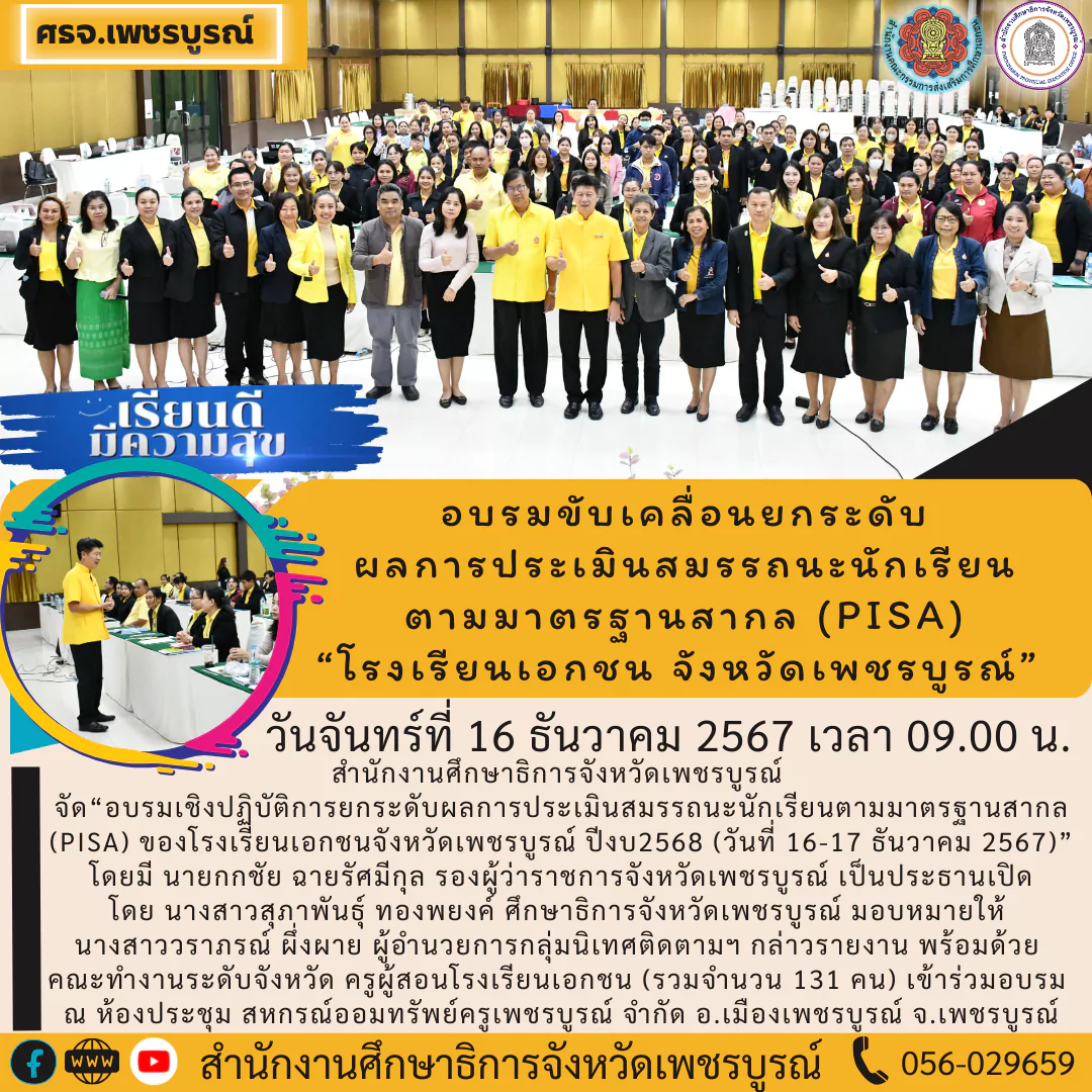 เปิดการประชุมตามโครงการพัฒนาครูโรงเรียนเอกชนจังหวัดเพชรบุรี โดยการขับเคลื่อนกระบวนการ “ชุมชนแห่งการเรียนรู้ทางวิชาชีพ” (PLC) สู่สถานศึกษา และพัฒนา