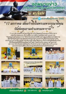 17 ม.ค. 68 นายอดิศร แก้วเซ่ง ศึกษาธิการจังหวัดเพชรบุรี มอบหมายให้ข้าราชการ กลุ่มนโยบายและแผน เข้าร่วมพิธีถวายราชสักการะพ่อขุนรามคำแหงมหาราช “วันพ่อขุนรามคำแหงมหาราช” ซึ่งจังหวัดเพชรบุรี จัดพิธีวางพานพุ่มดอกไม้ถวายราชสักการะ เพื่อรำลึกถึงพระมหากรุณาธิคุณของพ่อขุนรามคำแหงมหาราช ที่มีต่อประชาชนชาวไทย ทรงทำนุบำรุงบ้านเมือง และสร้างสรรค์มรดกด้านศิลปวัฒนธรรม ทั้งยังประดิษฐ์คิดค้นอักษรไทยขึ้นให้ชนรุ่นหลังได้ใช้กันจนถึงทุกวันนี้ โดยมี ร้อยตำรวจโท ภพชนก ชลานุเคราะห์ ผู้ว่าราชการจังหวัดเพชรบุรีพร้อมด้วย หัวหน้าส่วนราชการ รัฐวิสาหกิจ องค์กรเอกชน และประชาชนร่วมพิธี ณ ห้องประชุมพริบพรี ศาลากลางจังหวัดเพชรบุรี