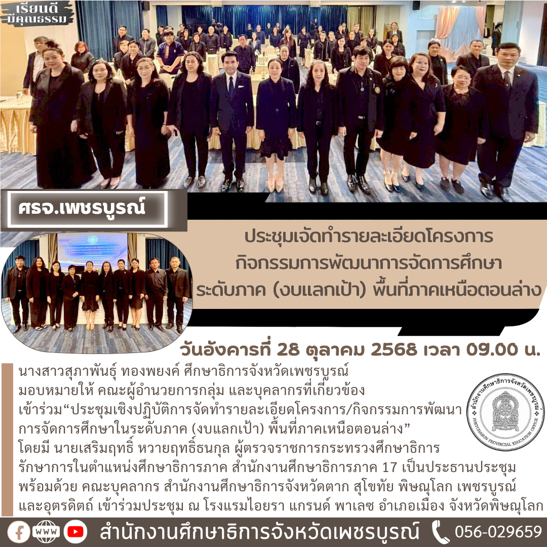 วันจันทร์ที่ 25 พฤศจิกายน 2567 เวลา 10.30 น. นางสาวสุภาพันธุ์ ทองพยงค์ ศึกษาธิการจังหวัดเพชรบูรณ์ มอบหมายให้ นางขวัญนภา จันทร์ดี รองศึกษาธิการจังหวัดเพชรบูรณ์ และคณะบุคลากร ร่วม“พิธีเปิดงานมหกรรมกองทุนแม่ของแผ่นดินจังหวัดเพชรบูรณ์ ประจำปี 2567” โดยมี นายศรัณยู มีทองคำ ผู้ว่าราชการจังหวัดเพชรบูรณ์ เป็นประธานในพิธี พร้อมด้วย หัวหน้าส่วนราชการ ทหาร ตำรวจ ผู้นำท้องถิ่น/ท้องที่ และเครือข่ายกองทุนแม่ของแผ่นดิน เข้าร่วมพิธี เพื่อให้ประชาชนตระหนักถึงความสำคัญของกระบวนการป้องกันและแก้ไขปัญหายาเสพติดในหมู่บ้าน/ชุมชน ด้วยกองทุนแม่ของแผ่นดิน ณ หอประชุม ศาลากลางจังหวัดเพชรบูรณ์