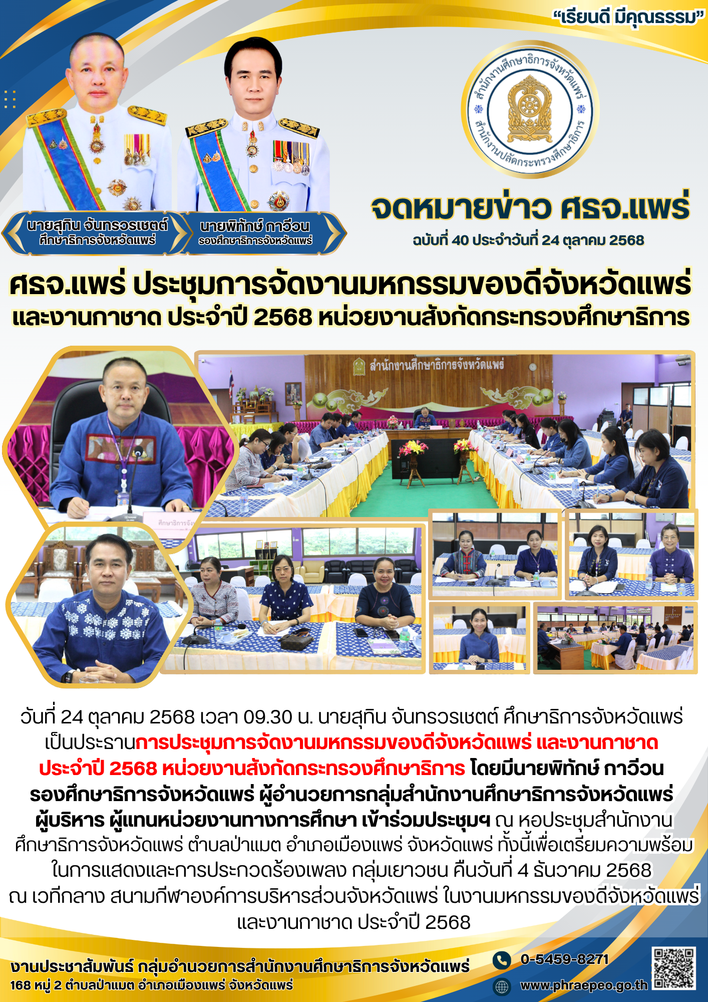 วันที่ 3 มกราคม 2567 เวลา 09.30 น. นายสุทิน จันทรวรเชตต์ ศึกษาธิการจังหวัดแพร่ ร่วมพิธีมอบเสื้อกันหนาวพระราชทานแก่นักเรียนศูนย์พัฒนาเด็กเล็กบ้านหนองแขม ของมูลนิธิราชประชานุเคราะห์ ในพระบรมราชูปถัมภ์ โดยมีนายชุติเดช มีจันทร์ ผู้ว่าราชการจังหวัดแพร่ ประธานกรรมการมูลนิธิราชประชานุเคราะห์ประจำจังหวัดแพร่ เป็นประธานในพิธี ณ ศูนย์พัฒนาเด็กเล็กบ้านหนองแขม องค์การบริหารส่วนตำบลป่าแดง ตำบลป่าแดง อำเภอเมืองแพร่ จังหวัดแพร่