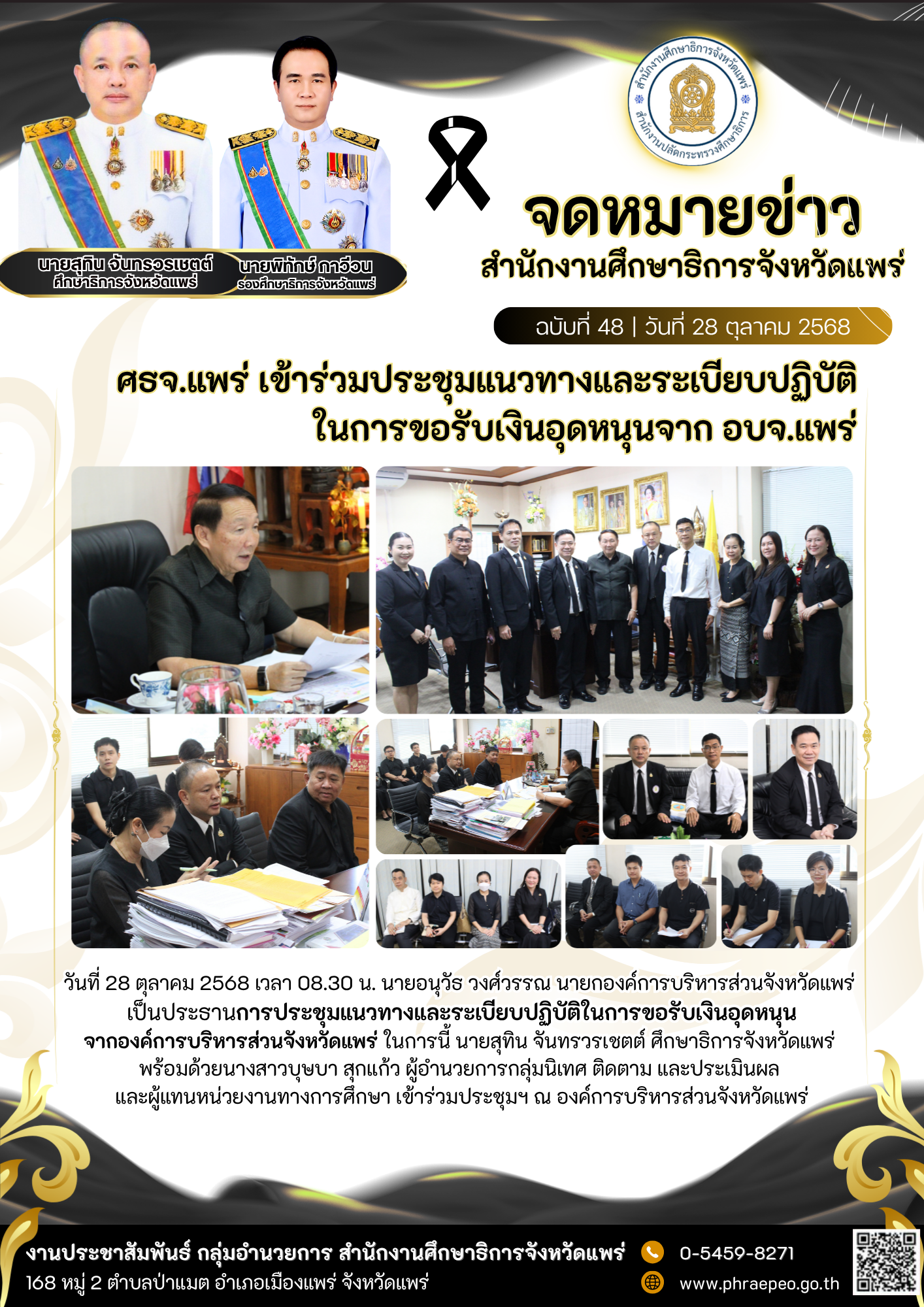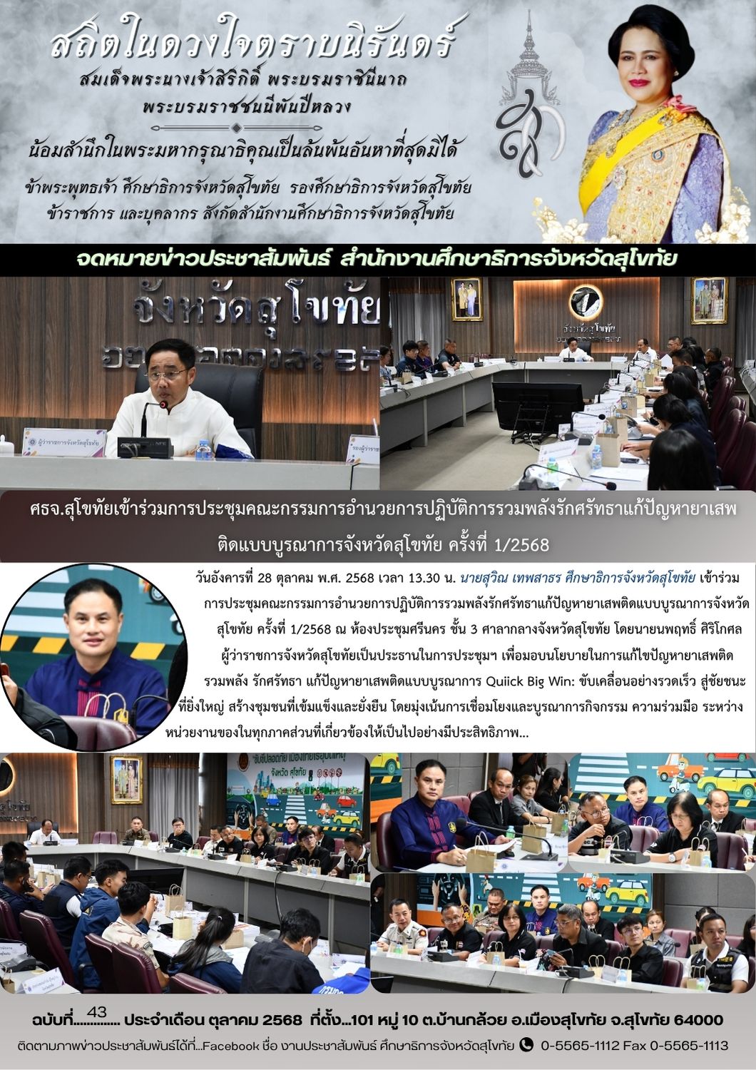วันจันทร์ที่ 19 กุมภาพันธ์ พ.ศ. 2567 เวลา 09.00 น. นายสุภชัย จันปุ่ม ศึกษาธิการภาค สำนักงานศึกษาธิการภาค 13 รักษาการในตำแหน่งผู้ตรวจราชการกระทรวงศึกษาธิการ ปฏิบัติหน้าที่ศึกษาธิการภาค สำนักงานศึกษาธิการภาค 14 มอบหมายให้ นายวุฒิพล ทับธานี รองศึกษาธิการภาค สำนักงานศึกษาธิการภาค 14 พร้อมด้วย นายนุสร จำปาวัลย์ ผู้อำนวยการกลุ่มตรวจราชการและติดตามประเมินผล และบุคลากรกลุ่มตรวจราชการและติดตามประเมินผล เข้าร่วมการประชุมตรวจราชการตามแผนการตรวจราชการแบบบูรณาการของผู้ตรวจราชการสำนักนายกรัฐมนตรี และคณะผู้ตรวจราชการกระทรวง เขตตรวจราชการที่ 14 ประจำปีงบประมาณ พ.ศ. 2567 รอบที่ 1ณ ห้องประชุมศูนย์ปฏิบัติการจังหวัดอำนาจเจริญ (P0C) ศาลากลางจังหวัดอำนาจเจริญ เพื่อติดตามงานและโครงการในประเด็นนโยบายเร่งด่วนของรัฐบาล เรื่อง มาตรการพักชำระหนี้ให้กับลูกหนี้รายย่อยตามนโยบายรัฐบาล และนโยบายสำคัญของรัฐบาลเพื่อเสริมสร้างขีดความสามารถให้กับประชาชน (ด้านการสร้างรายได้ การส่งเสริมและพัฒนาด้านการท่องเที่ยวและด้านการสร้างคุณภาพชีวิต การแก้ไขปัญหาเปลี่ยนแปลงสภาพภูมิอากาศเพื่อมุ่งสู่สังคมคาร์บอนต่ำ) โดยมี นายนพพร บุญแก้ว ผู้ตรวจราชการสำนักนายกรัฐมนตรี เขตตรวจราชการที่ 14 เป็นประธานการประชุม นายภูษิต น้อยโสภากูล หัวหน้าสำนักงานจังหวัดอำนาจเจริญ กล่าวรายงานการประชุม และมีผู้ตรวจราชการกระทรวง ผู้ตรวจราชการกรม ที่ปรึกษาผู้ตรวจราชการ ภาคประชาชน และหัวหน้าส่วนราชการที่เกี่ยวข้อง เข้าร่วมการประชุมในครั้งนี้