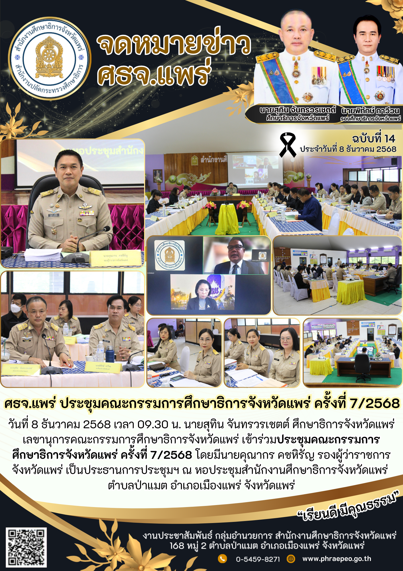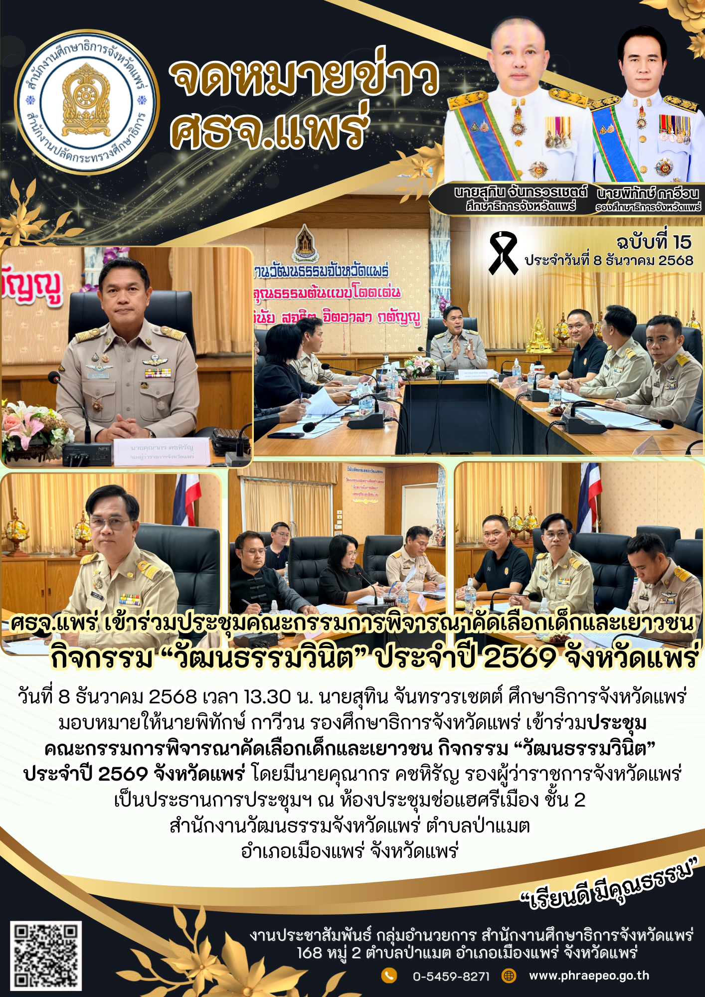 12 ธ.ค. 68 ศธจ.แพร่ เข้าร่วมประชุมคณะกรรมการพิจารณาคัดเลือกเด็กและเยาวชน กิจกรรม “วัฒนธรรมวินิต” ประจำปี 2569 จังหวัดแพร่