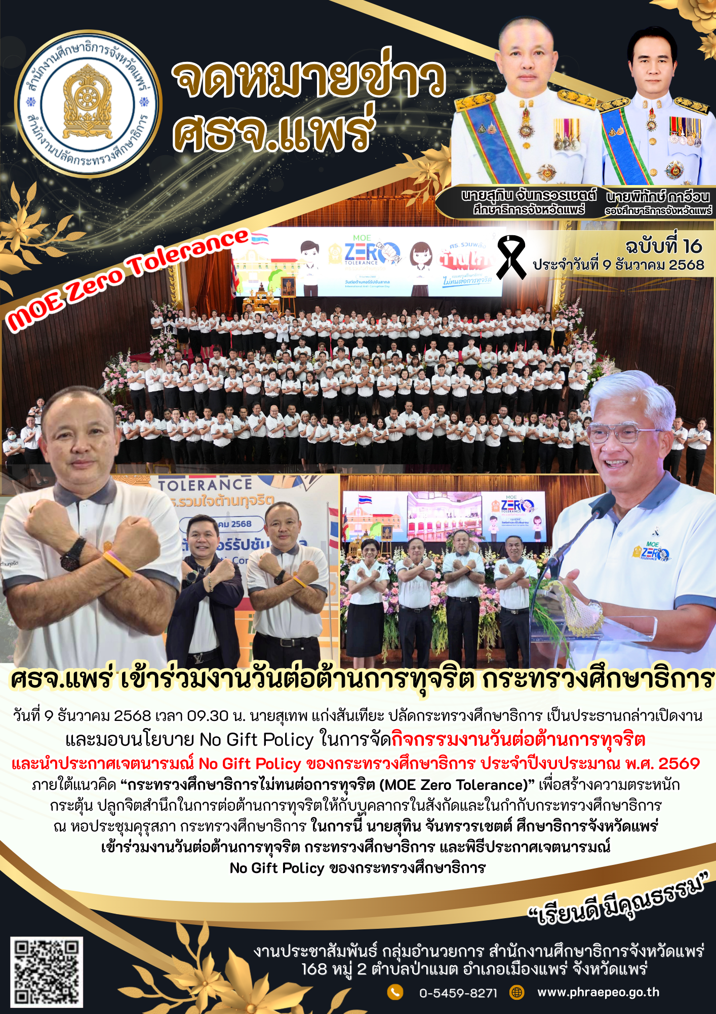 09 ธ.ค. 68 งานวันต่อต้านการทุจริต กระทรวงศึกษาธิการ ภายใต้แนวคิด “กระทรวงศึกษาธิการไม่ทนต่อการทุจริต” (MOE ZERO TOLERANCE) ประจำปีงบประมาณ พ.ศ. 2569