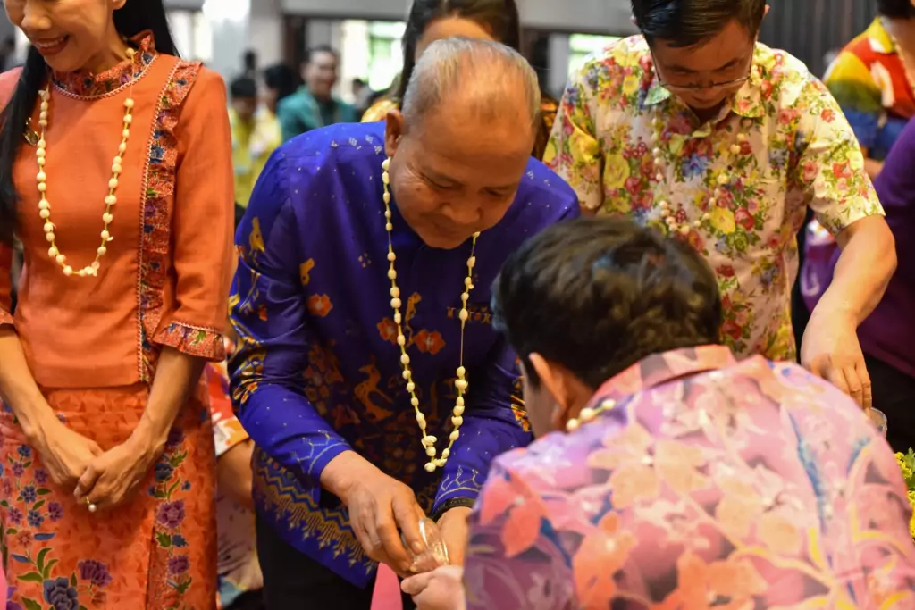 พล.ต.อ.เพิ่มพูน ชิดชอบ รมว.ศธ. กล่าวชื่นชมชาวกระทรวงศึกษาธิการ ที่ยังคงรักษาและสืบทอดประเพณีอันดีงามเกี่ยวกับวันสงกรานต์ ซึ่งถือเป็นวันขึ้นปีใหม่ของไทยที่ยึดถือปฏิบัติสืบเนื่องกันมาแต่โบราณ มีการจัดกิจกรรมที่สะท้อนความเป็นไทยมาอย่างต่อเนื่อง อาทิ การรดน้ำขอพรจากผู้ใหญ่เพื่อความเป็นสิริมงคลแก่ชีวิต ซึ่งเป็นการแสดงออกถึงความกตัญญูกตเวที และเป็นแบบอย่างที่ดีแก่คนรุ่นหลัง