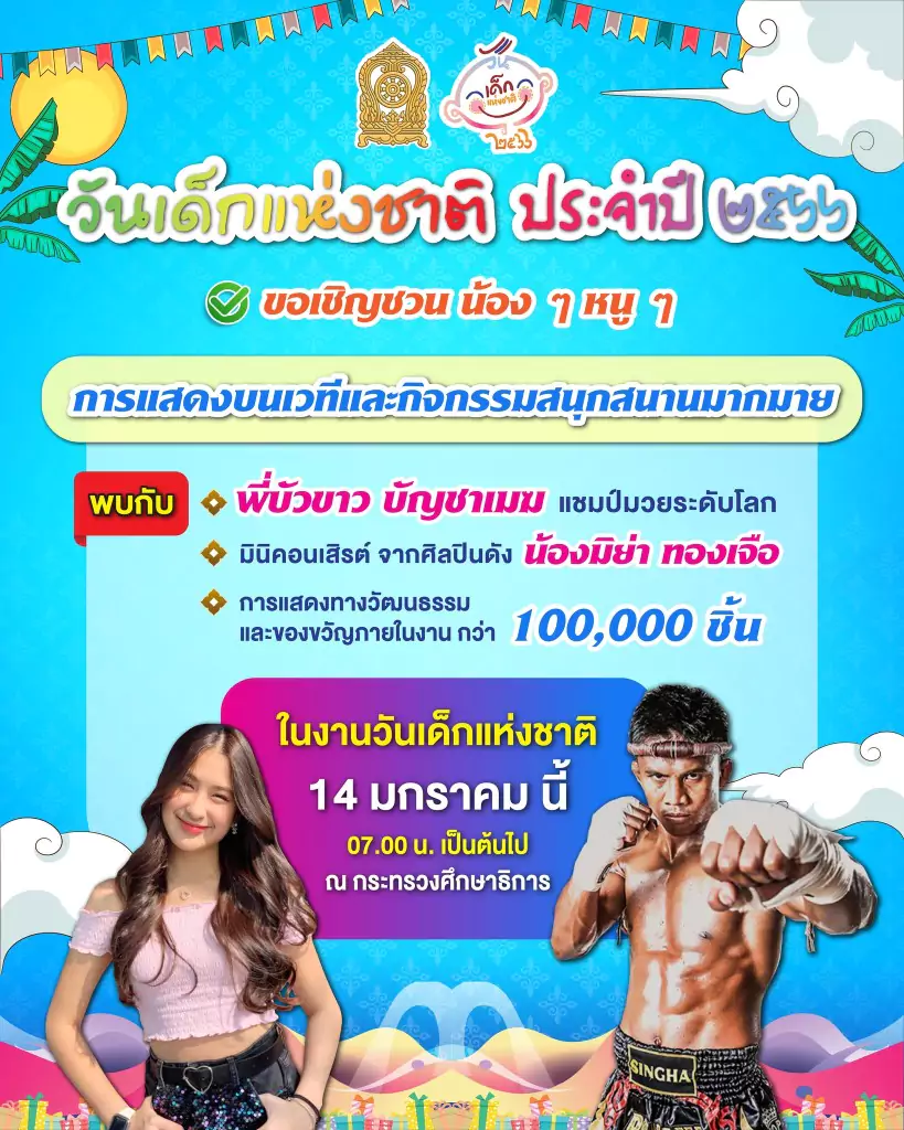 “ตรีนุช” เชิญชวนน้องๆ ร่วมงานวันเด็กแห่งชาติ ที่กระทรวงศึกษาธิการ จัดเต็มทั้งกิจกรรมบนเวที พี่บัวขาวก็มา “มิย่า ทองเจือ” ก็เปิดเวทีมินิคอนเสิร์ต พร้อมกิจกรรมที่น่าสนใจอีกมากมาย รางวัลกว่าแสนชิ้น ถ่ายทอดสดพิธีเปิดงาน โดยนายกรัฐมนตรีเป็นประธาน ผ่าน Facebook “ศธ.360 องศา”