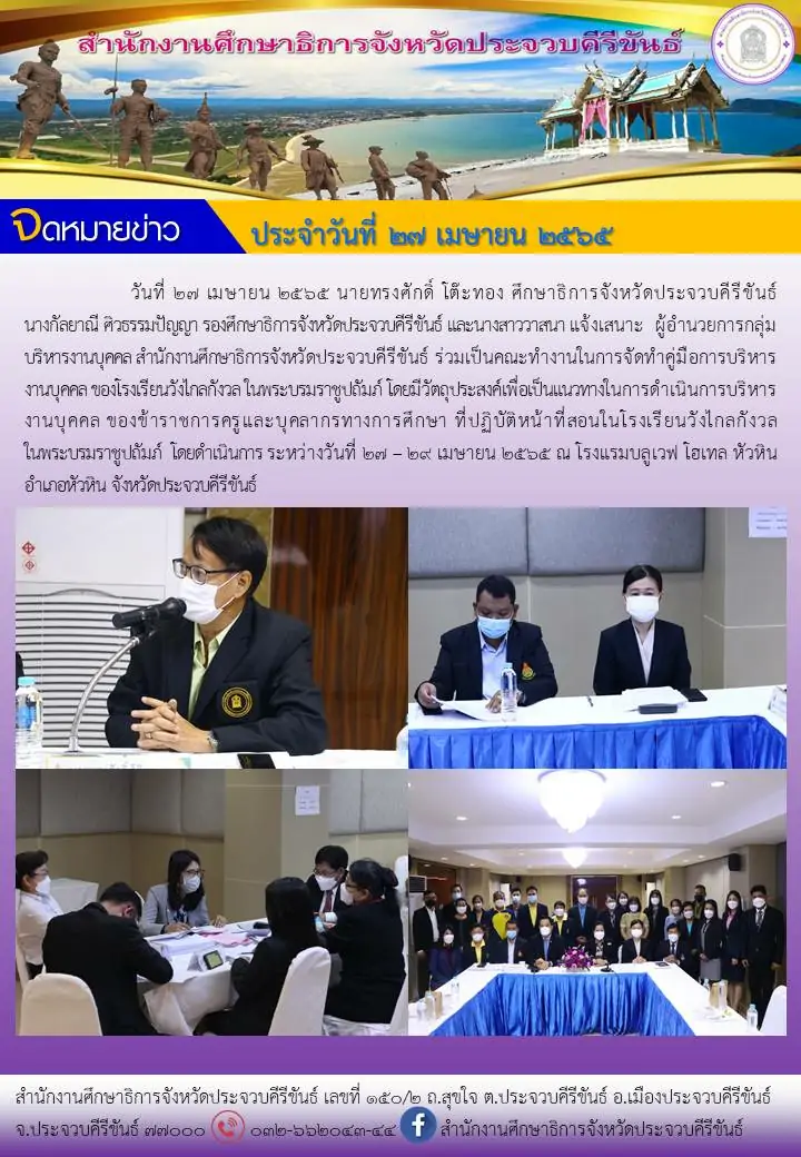 เมื่อวันที่ 14 พฤศจิกายน 2561 เวลา 08.00 น. นายพิเชษฐ์ เจ้ยทองศรี ศึกษาธิการจังหวัดกระบี่ พร้อมด้วยข้าราชการในสังกัด เข้าร่วมพิธีวางพานพุ่มดอกไม้สด ถวายแด่พระบาทสมเด็จพระปรมินทรมหาภูมิพลอดุลยเดช บรมนาถบพิตร เนื่องใน”วันพระบิดาแห่งฝนหลวง” โดยมี พ.ต.ท. ม.ล.กิติบดี ประวิตร ผู้ว่าราชการจังหวัดกระบี่ เป็นประธานในพิธีวางพานพุ่ม