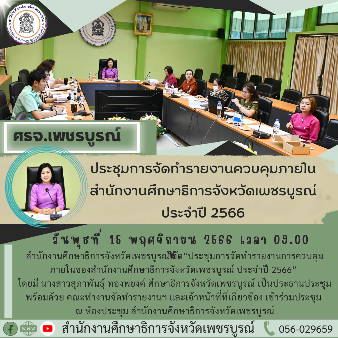 15 พ.ย. 66 (ศธจ.เพชรบูรณ์) “ประชุมการจัดทำรายงานการควบคุมภายในของสำนักงานศึกษาธิการจังหวัดเพชรบูรณ์ ประจำปี 2566”