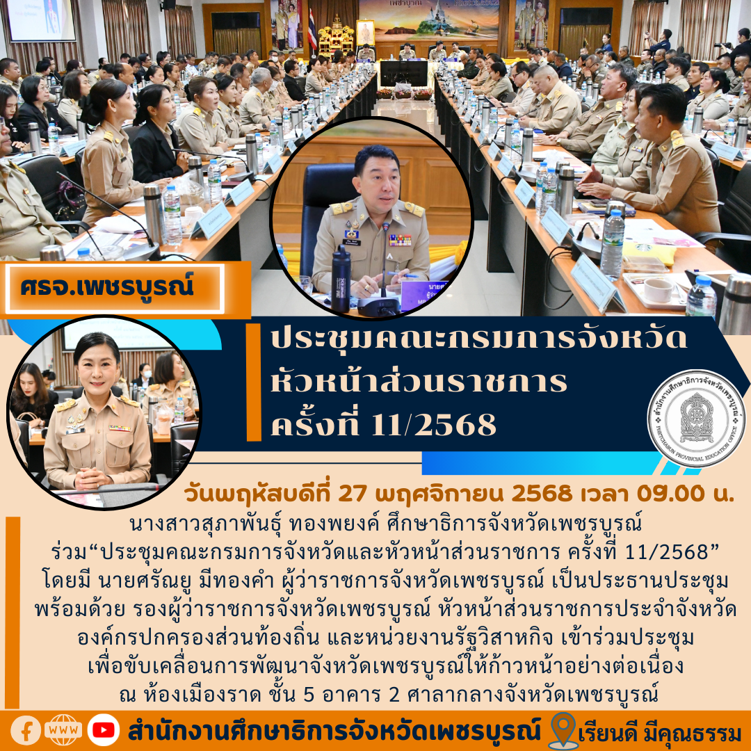 วันอังคารที่ 15 พฤศจิกายน 2565 สำนักงานศึกษาธิการจังหวัดกาญจนบุรีจัดประชุมคณะทำงานร่วมกันตรวจสอบข้อมูลและจัดทำรายละเอียดและนำเสนอ การบรรจุ การแต่งตั้ง การโยกย้าย การดำเนินการทางวินัย การกำหนดวิทยฐานะ หรือการกำหนดสิทธิประโยชน์ต่างๆ ของข้าราชการครูและบุคลากรทางการศึกษา ทุกประเภท ทุกตำแหน่ง ครั้งที่ 11/2565 เวลา 09.00 น. ณ ห้องประชุม สำนักงานศึกษาธิการจังหวัดกาญจนบุรี โดย น.ส.อรวรรณ คำมาก รองศึกษาธิการจังหวัดกาญจนบุรี เป็นประธานการประชุม โดยมี นายบุญส่ง โชยรัมย์ รอง ผอ.สพป.กาญจนบุรี เขต 2 นายบรรพจน์ ทัพซ้าย รอง ผอ.สพป.กาญจนบุรี เขต 4 และผู้แทนจากทุกเขตพื้นที่เข้าร่วมประชุม เพื่อพิจารณารายละเอียดตามระเบียบวาระการประชุมเพื่อเสนอ กศจ.พิจารณา ในวันที่ 22 พฤศจิกายน 2565 ที่จะถึงนี้
