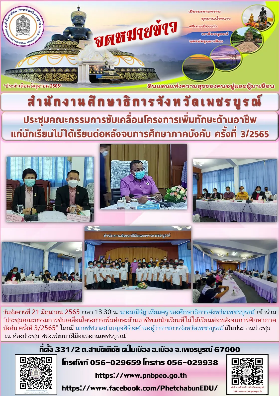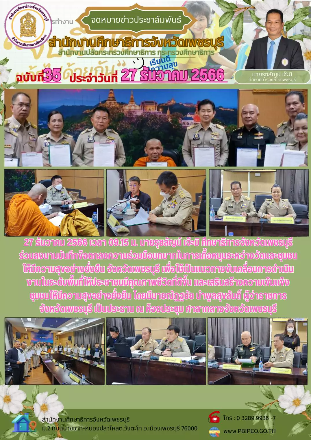 วันที่ ๑๐ กันยายน ๒๕๖๑ นายวีระ ทวีสุข ศึกษาธิการจังหวัดสุพรรณบุรี เป็นประธานที่ประชุมการบริหารจัดการโรงเรียนขนาดเล็ก สังกัดสำนักงานคณะกรรมการการศึกษาขั้นพื้นฐาน จังหวัดสุพรรณบุรี ณ ห้องประชุมขุนศรีวิชัย โรงแรมสองพันบุรี อำเภอเมืองสุพรรณบุรี จังหวัดสุพรรณบุรี ผู้เข้าร่วมประชุมประกอบด้วย รองผู้อำนวยการสำนักงานเขตพื้นที่การศึกษาประถมศึกษาสุพรรณบุรี ผู้อำนวยการกลุ่มนโยบายและแผน เจ้าหน้าที่ผู้รับผิดชอบ ของสำนักงานเขตพื้นที่การศึกษาประถมศึกษาสุพรรณบุรี เขต ๑-๓ และเจ้าหน้าที่สำนักงานศึกษาธิการจังหวัดสุพรรณบุรี