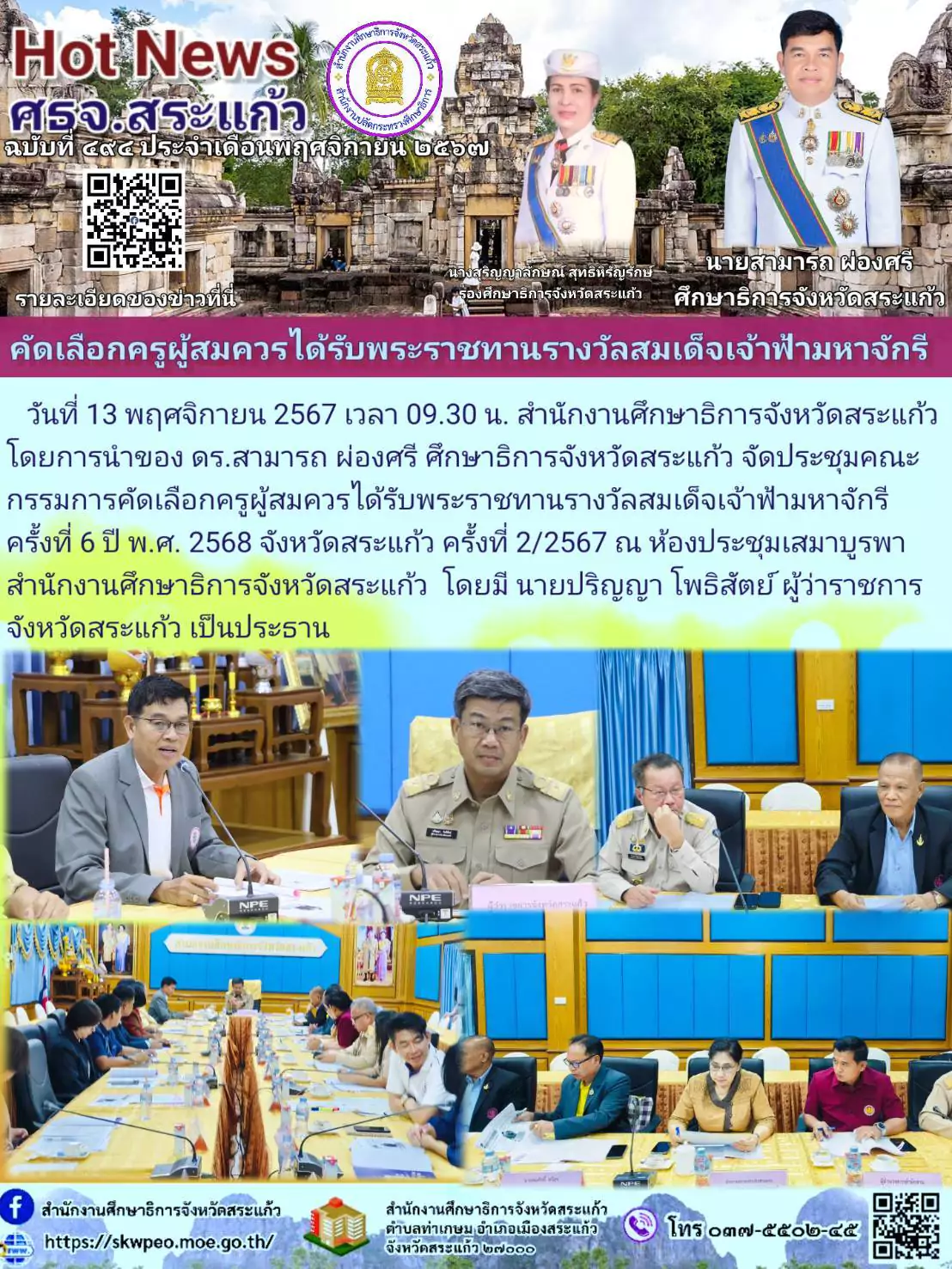 13 พ.ย. 67 (ศธจ.สระแก้ว) เข้าร่วมการประชุมคณะกรรมการขับเคลื่อนพื้นที่นวัตกรรมการศึกษาจังหวัดสระแก้ว ครั้งที่ 3/2567
