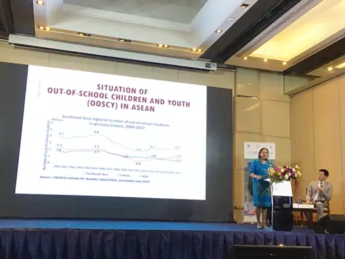 2) การประชุมระดับอาเซียนว่าด้วยเด็กและเยาวชนที่ตกหล่นเพื่อเน้นย้ำถึงความจำเป็นของการร่วมมือกันในการจัดการปัญหาเด็กและเยาวชนที่ตกหล่น ณ ประเทศไทย และ