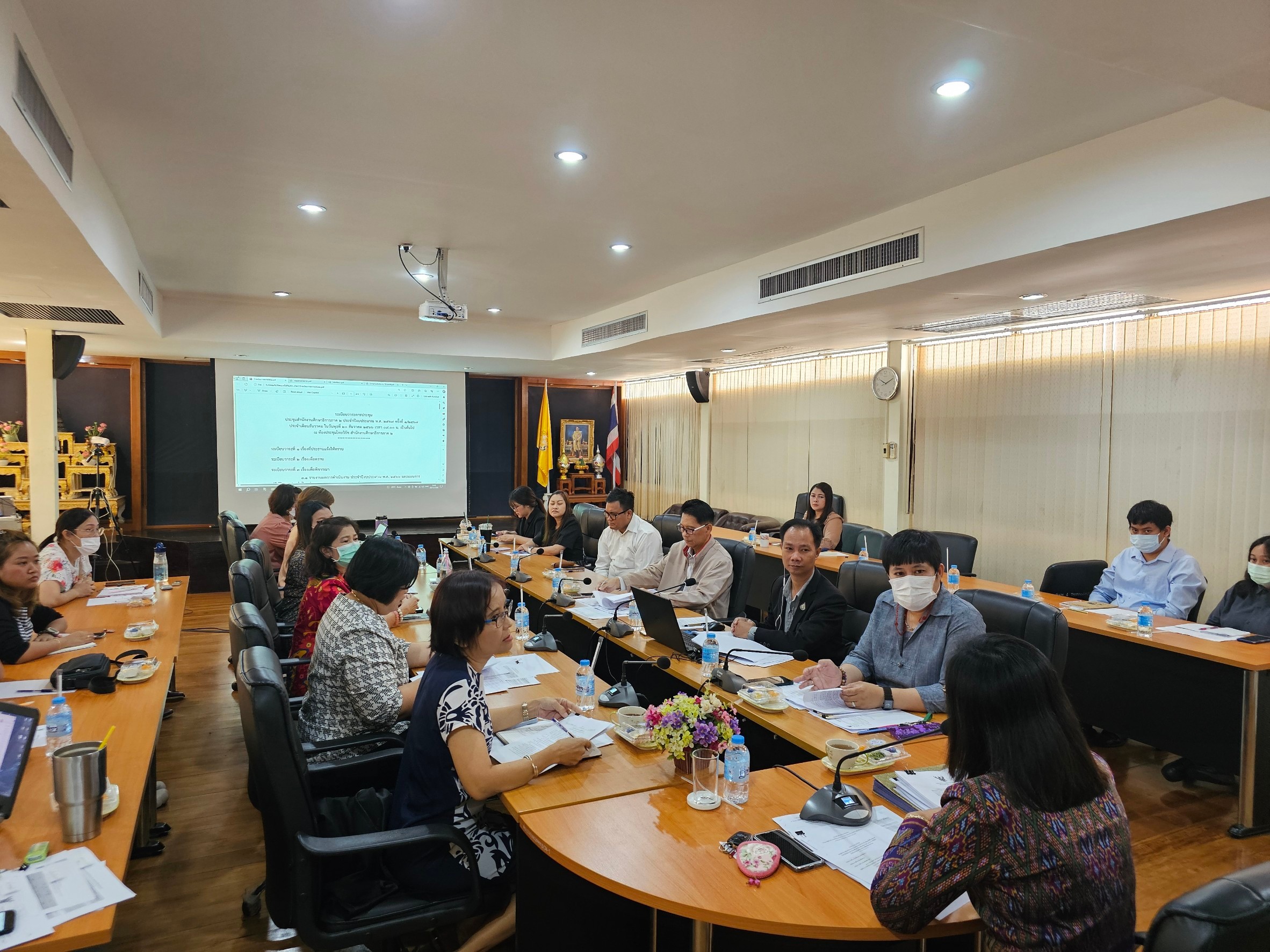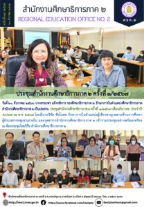 วันที่ ๒๐ ธันวาคม ๒๕๖๖ นางธรรมพร แข็งกสิการ รองศึกษาธิการภาค ๒ รักษาการในตำแหน่งศึกษาธิการภาค สำนักงานศึกษาธิการภาค ๒ เป็นประธาน ประชุมสำนักงานศึกษาธิการภาค ๒ ครั้งที่ ๑/๒๕๖๗ เดือนธันวาคม ประจำปีงบประมาณ พ.ศ. ๒๕๖๗ โดยมีนายวิชัย ชัยโกศล รักษาการในตำแหน่งผู้เชี่ยวชาญเฉพาะด้านการศึกษา ผู้อำนวยการกลุ่มงานภายใน และบุคลากรสำนักงานศึกษาธิการภาค ๒ เข้าร่วมประชุมอย่างพร้อมเพรียง ณ ห้องประชุมไทยวิรัช สำนักงานศึกษาธิการภาค ๒