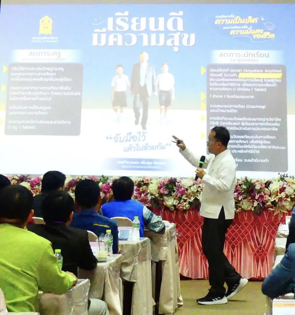8 พฤศจิกายน 2566 / ดร.วีระ แข็งกสิการ ผู้ตรวจราชการกระทรวงศึกษาธิการ ได้รับเชิญไปบรรยายที่สำนักงานเขตพื้นที่การศึกษาประถมศึกษา เชียงใหม่ เขต 4 ให้กับผู้อำนวยการโรงเรียน ผู้อำนวยการกลุ่ม และศึกษานิเทศก์ เพื่อขับเคลื่อนนโยบาย “เรียนดี มีความสุข” ของ รมว.ศธ. ที่มุ่งหวังเพื่อยกระดับคุณภาพการศึกษา ลดภาระครู บุคลากรทางการศึกษา นักเรียน และผู้ปกครอง พร้อมลดขั้นตอนการดำเนินงาน นำระบบเทคโนโลยี Smart Office ลดใช้กระดาษในการประชุมและการทำงาน เพิ่มประสิทธิภาพการทำงานภาครัฐ