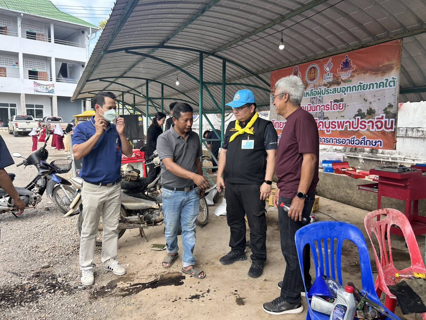 ศูนย์ดังกล่าวมีนักเรียนนักศึกษาจาก วิทยาลัยเทคนิคบูรพาปราจีนบุรี เข้ามาปฏิบัติงานอย่างแข็งขัน ดร.ชูสิน วรเดช ผู้ตรวจราชการกระทรวงศึกษาธิการ ได้เข้าเยี่ยมเยือนและให้กำลังใจแก่ผู้บริหาร คุณครู รวมถึงนักเรียนนักศึกษาผู้ปฏิบัติหน้าที่ พร้อมทั้งมอบน้ำมันเครื่องและน้ำมัน 2T เพื่อสนับสนุนการทำงานด้านการซ่อมแซมรถจักรยานยนต์ของผู้ประสบภัย ให้สามารถกลับมาใช้งานได้โดยเร็วที่สุด