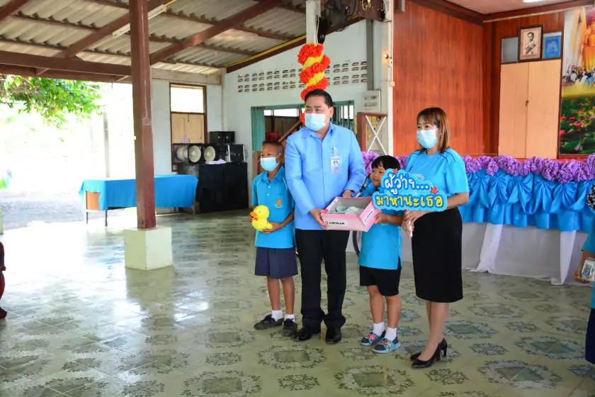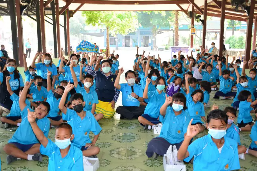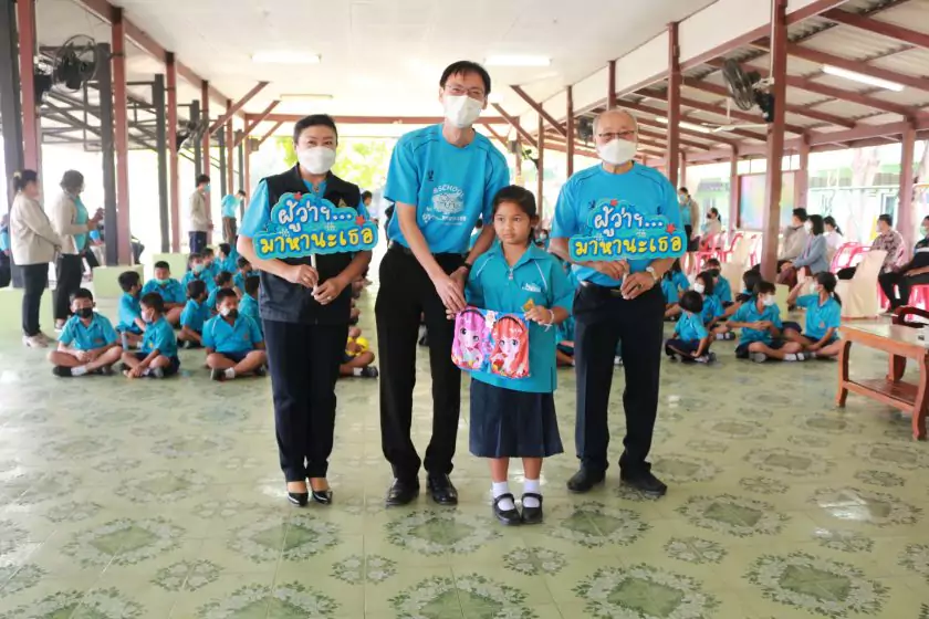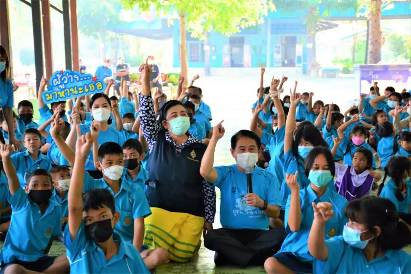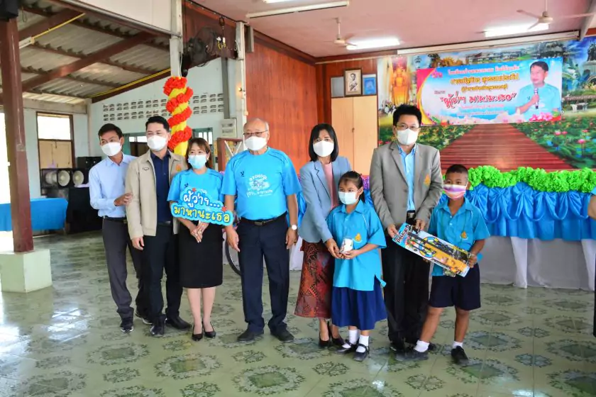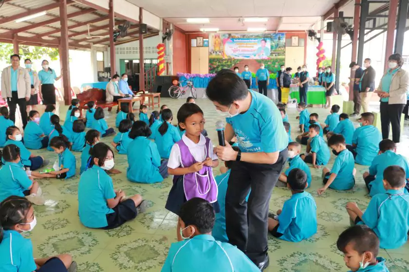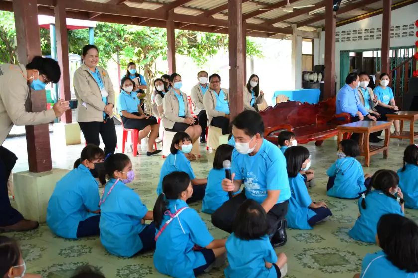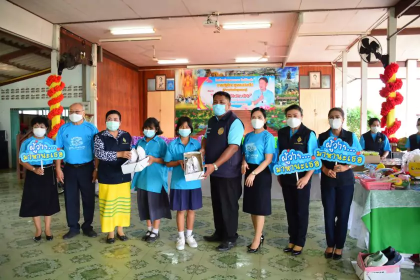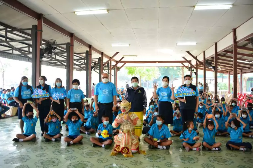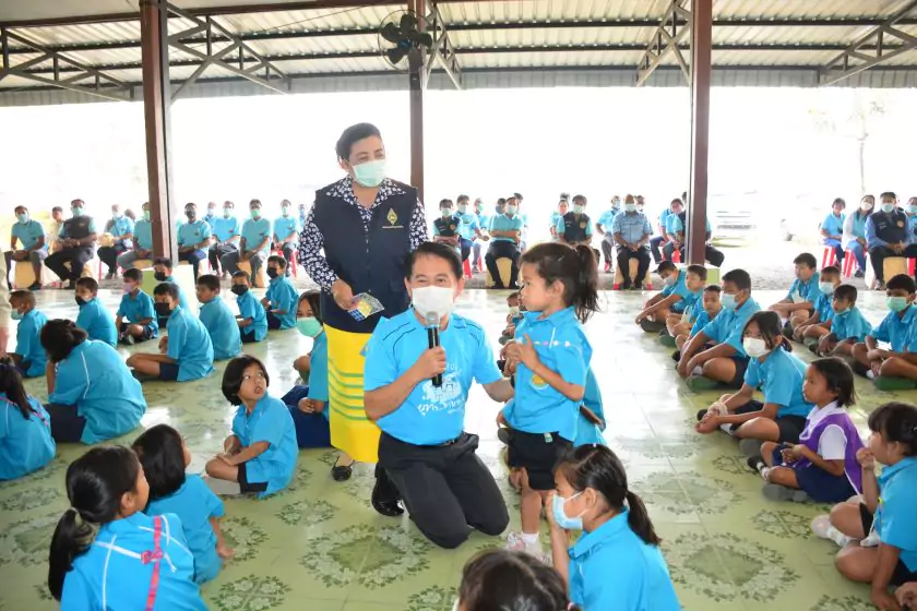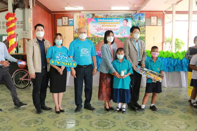 วันศุกร์ที่ ๒๔ กุมภาพันธ์ ๒๕๖๖ กิจกรรม “ผู้ว่าฯ มาหานะเธอ” ครั้งที่ ๓๗ ตามโครงการผู้ว่าราชการจังหวัดกับการศึกษาสุพรรณบุรี ณ โรงเรียนบ้านคลองชะอม อำเภอศรีประจันต์ สังกัดสำนักงานเขตพื้นที่การศึกษาประถมศึกษาสุพรรณบุรี เขต ๑ นายณัฐภัทร สุวรรณประทีป ผู้ว่าราชการจังหวัดสุพรรณบุรี พร้อมด้วยเหล่ากาชาดจังหวัดสุพรรณบุรี หัวหน้าหน่วยงานและผู้นำชุมชนในพื้นที่อำเภอเมืองสุพรรณบุรี ดร.รัตน์มณี รัตนปกรณ์ ผู้อำนวยการสำนักงานเขตพื้นที่การศึกษาประถมศึกษาสุพรรณบุรี เขต ๑ และคณะ ดร.พัฒนาพร ไทยพิบูลย์ รองศึกษาธิการจังหวัดสุพรรณบุรี ตัวแทนผู้อำนวยการกลุ่ม ศึกษานิเทศก์ และเจ้าหน้าที่สำนักงานศึกษาธิการจังหวัดสุพรรณบุรี ทำหน้าที่เลขานุการ โดยได้ร่วมเคารพธงชาติ สวดมนต์ ถาม-ตอบปัญหา แจกของรางวัล เพื่อส่งเสริมความรู้ ความเข้าใจเกี่ยวกับสถาบันหลักของชาติ ฝากข้อคิดในการพัฒนาโรงเรียนด้วยหลัก บ-ว-ร พัฒนานักเรียนโดยใช้โครงการเยาวชนคนดีศรีสุพรรณ ส่งเสริมและขยายผลไปสู่ครอบครัวคุณธรรม ท้ายสุด ผู้ว่าฯ ขอสัญญาจากนักเรียน ๒ ข้อ คือ ไม่ยุ่งเกี่ยวกับยาเสพติด และ ขอให้เป็นเด็กดีของพ่อแม่ไม่ทำให้พ่อแม่เสียใจ
