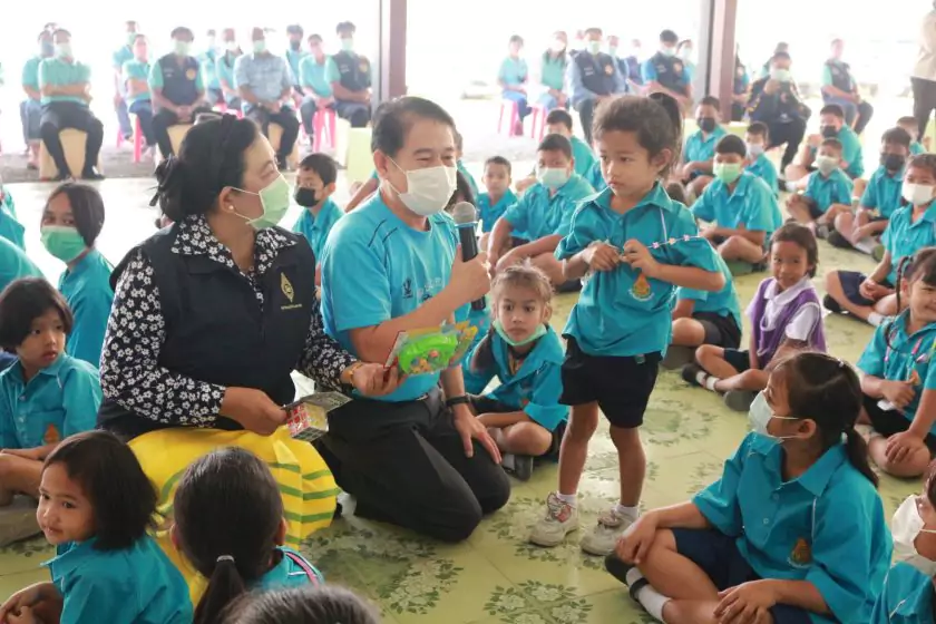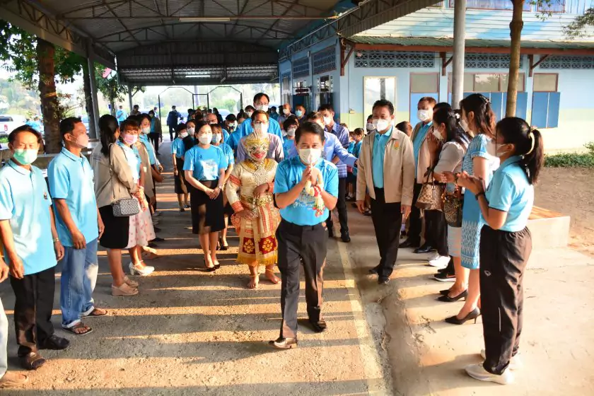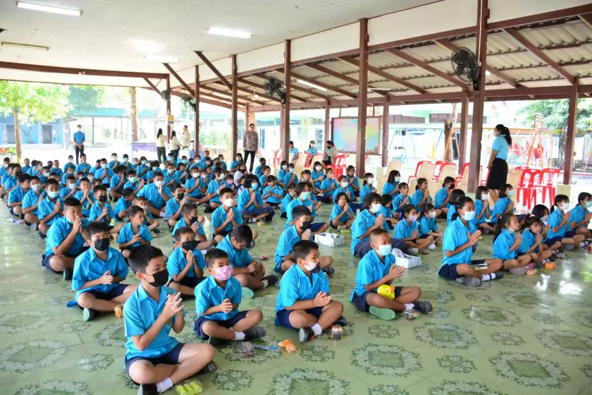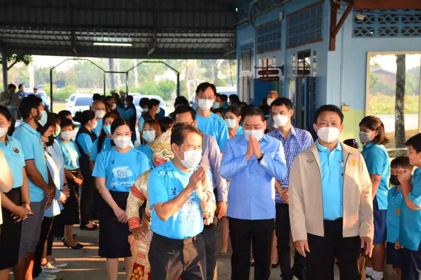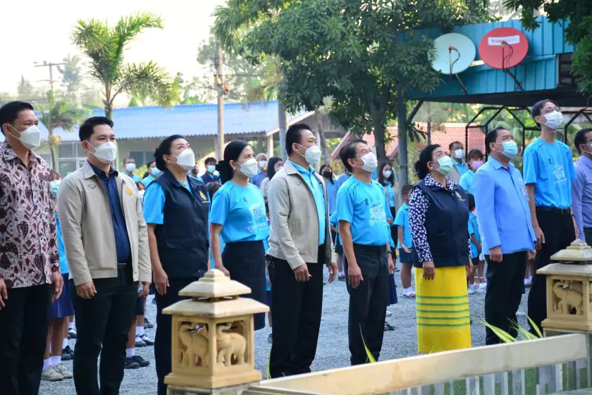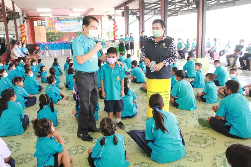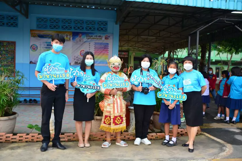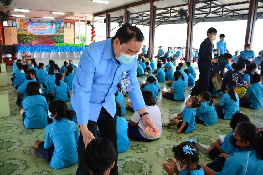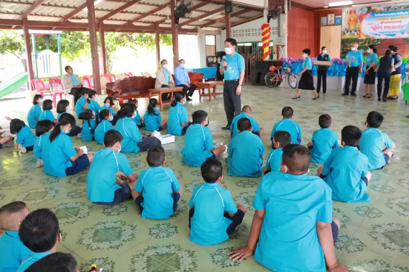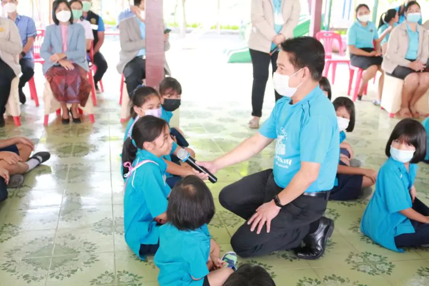 วันศุกร์ที่ ๒๔ กุมภาพันธ์ ๒๕๖๖ กิจกรรม “ผู้ว่าฯ มาหานะเธอ” ครั้งที่ ๓๗ ตามโครงการผู้ว่าราชการจังหวัดกับการศึกษาสุพรรณบุรี ณ โรงเรียนบ้านคลองชะอม อำเภอศรีประจันต์ สังกัดสำนักงานเขตพื้นที่การศึกษาประถมศึกษาสุพรรณบุรี เขต ๑ นายณัฐภัทร สุวรรณประทีป ผู้ว่าราชการจังหวัดสุพรรณบุรี พร้อมด้วยเหล่ากาชาดจังหวัดสุพรรณบุรี หัวหน้าหน่วยงานและผู้นำชุมชนในพื้นที่อำเภอเมืองสุพรรณบุรี ดร.รัตน์มณี รัตนปกรณ์ ผู้อำนวยการสำนักงานเขตพื้นที่การศึกษาประถมศึกษาสุพรรณบุรี เขต ๑ และคณะ ดร.พัฒนาพร ไทยพิบูลย์ รองศึกษาธิการจังหวัดสุพรรณบุรี ตัวแทนผู้อำนวยการกลุ่ม ศึกษานิเทศก์ และเจ้าหน้าที่สำนักงานศึกษาธิการจังหวัดสุพรรณบุรี ทำหน้าที่เลขานุการ โดยได้ร่วมเคารพธงชาติ สวดมนต์ ถาม-ตอบปัญหา แจกของรางวัล เพื่อส่งเสริมความรู้ ความเข้าใจเกี่ยวกับสถาบันหลักของชาติ ฝากข้อคิดในการพัฒนาโรงเรียนด้วยหลัก บ-ว-ร พัฒนานักเรียนโดยใช้โครงการเยาวชนคนดีศรีสุพรรณ ส่งเสริมและขยายผลไปสู่ครอบครัวคุณธรรม ท้ายสุด ผู้ว่าฯ ขอสัญญาจากนักเรียน ๒ ข้อ คือ ไม่ยุ่งเกี่ยวกับยาเสพติด และ ขอให้เป็นเด็กดีของพ่อแม่ไม่ทำให้พ่อแม่เสียใจ
