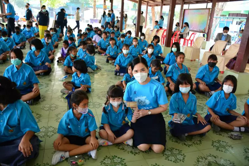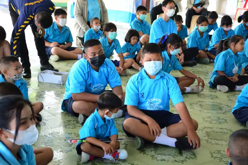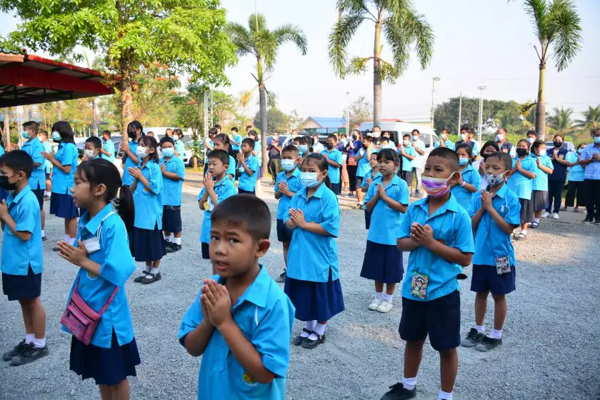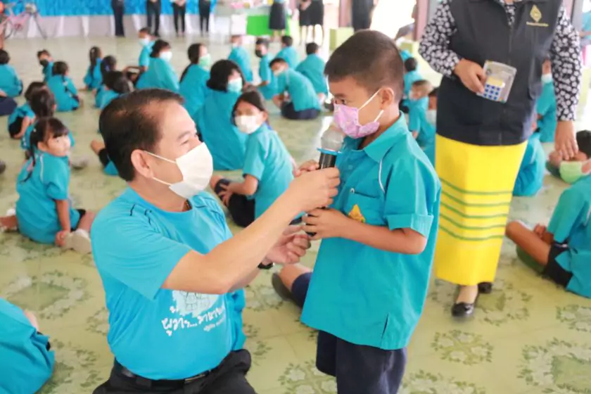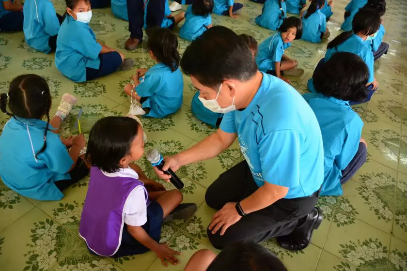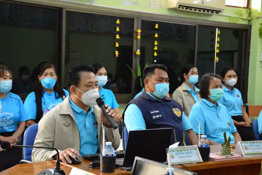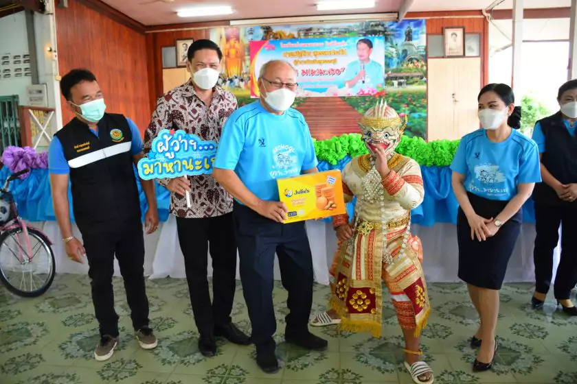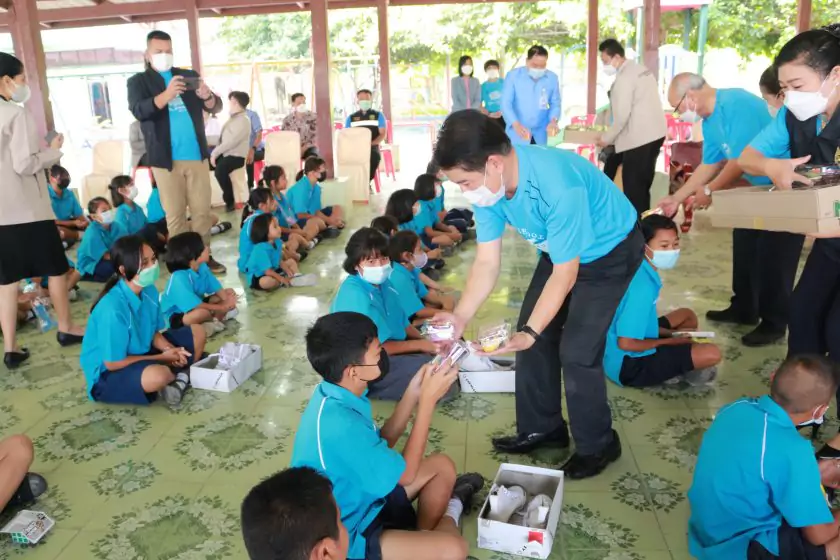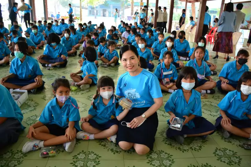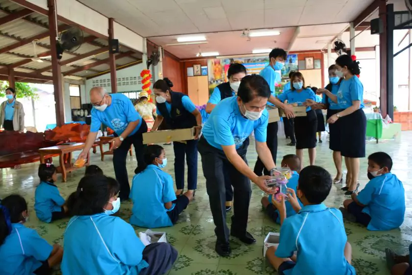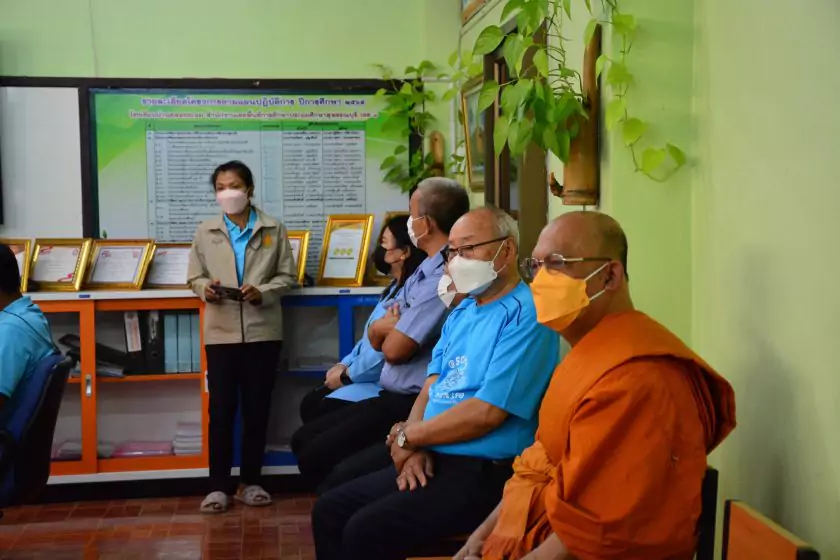 วันศุกร์ที่ ๒๔ กุมภาพันธ์ ๒๕๖๖ กิจกรรม “ผู้ว่าฯ มาหานะเธอ” ครั้งที่ ๓๗ ตามโครงการผู้ว่าราชการจังหวัดกับการศึกษาสุพรรณบุรี ณ โรงเรียนบ้านคลองชะอม อำเภอศรีประจันต์ สังกัดสำนักงานเขตพื้นที่การศึกษาประถมศึกษาสุพรรณบุรี เขต ๑ นายณัฐภัทร สุวรรณประทีป ผู้ว่าราชการจังหวัดสุพรรณบุรี พร้อมด้วยเหล่ากาชาดจังหวัดสุพรรณบุรี หัวหน้าหน่วยงานและผู้นำชุมชนในพื้นที่อำเภอเมืองสุพรรณบุรี ดร.รัตน์มณี รัตนปกรณ์ ผู้อำนวยการสำนักงานเขตพื้นที่การศึกษาประถมศึกษาสุพรรณบุรี เขต ๑ และคณะ ดร.พัฒนาพร ไทยพิบูลย์ รองศึกษาธิการจังหวัดสุพรรณบุรี ตัวแทนผู้อำนวยการกลุ่ม ศึกษานิเทศก์ และเจ้าหน้าที่สำนักงานศึกษาธิการจังหวัดสุพรรณบุรี ทำหน้าที่เลขานุการ โดยได้ร่วมเคารพธงชาติ สวดมนต์ ถาม-ตอบปัญหา แจกของรางวัล เพื่อส่งเสริมความรู้ ความเข้าใจเกี่ยวกับสถาบันหลักของชาติ ฝากข้อคิดในการพัฒนาโรงเรียนด้วยหลัก บ-ว-ร พัฒนานักเรียนโดยใช้โครงการเยาวชนคนดีศรีสุพรรณ ส่งเสริมและขยายผลไปสู่ครอบครัวคุณธรรม ท้ายสุด ผู้ว่าฯ ขอสัญญาจากนักเรียน ๒ ข้อ คือ ไม่ยุ่งเกี่ยวกับยาเสพติด และ ขอให้เป็นเด็กดีของพ่อแม่ไม่ทำให้พ่อแม่เสียใจ