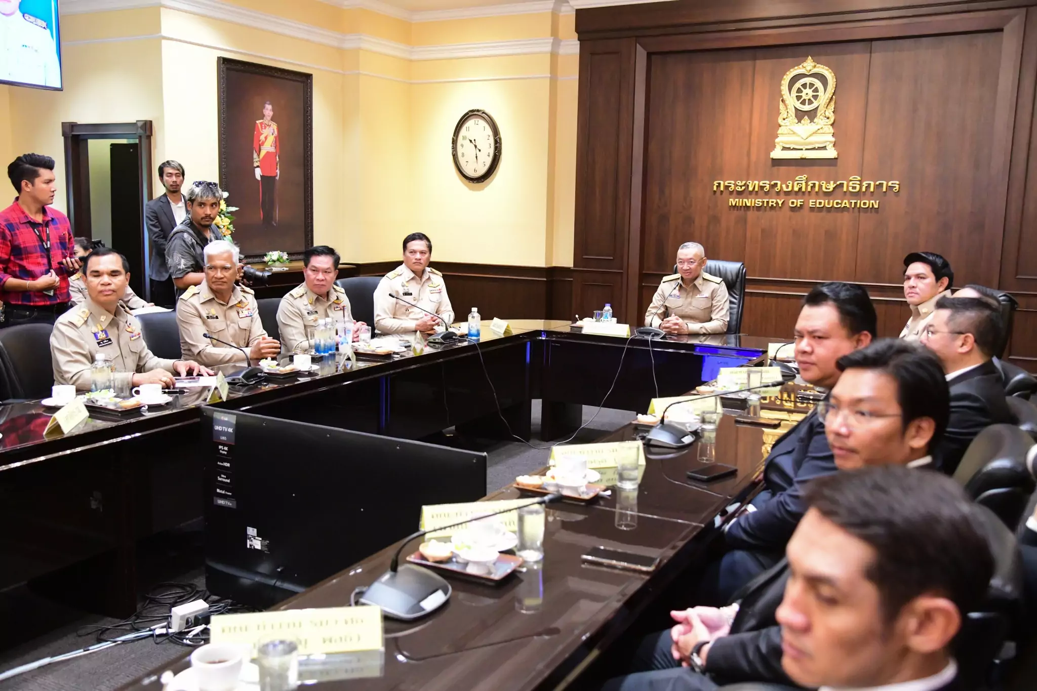 โดยมีนายอรรถพล สังขวาสี ปลัดกระทรวงศึกษาธิการ, นายอัมพร พินะสา เลขาธิการคณะกรรมการการศึกษาขั้นพื้นฐาน, ว่าที่ร้อยตรี ธนุ วงษ์จินดา เลขาธิการคณะกรรมการการอาชีวศึกษา, นายสุเทพ แก่งสันเทียะ เลขาธิการสภาการศึกษา และคณะผู้บริหารในสังกัด/ในกำกับ รวมทั้งข้าราชการ และเจ้าหน้าที่ให้การต้อนรับ