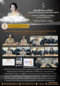 วันจันทร์ที่ 1 ธันวาคม พ.ศ. 2568 นางรัชดาภรณ์ ปฏิบัติ ศึกษาธิการจังหวัดระนอง พร้อมด้วยบุคลากรในสำนักงานศึกษาธิการจังหวัดระนอง เข้าร่วมประชุม การจัดทำคู่มือมาตรฐานการปฏิบัติงาน (Standard Operating Procedure : SOP) ของหน่วยงานในสังกัดสำนักงานปลัดกระทรวงศึกษาธิการ เพื่อให้การดำเนินการ เป็นไปตามเป้าหมายที่กำหนด ด้วยวิธีการประชุมทางไกล (Video Conference) ผ่านระบบ Zoom Meeting ณ ห้องประชุมสำนักงานศึกษาธิการจังหวัดระนอง