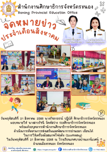 วันพฤหัสบดีที่ 21 สิงหาคม 2568 นางรัชดาภรณ์ ปฏิบัติ ศึกษาธิการจังหวัดระนอง มอบหมายให้ นางสาวรัชนี จิตต์สว่าง รองศึกษาธิการจังหวัดระนอง พร้อมด้วยบุคลากรสำนักงานศึกษาธิการจังหวัดระนอง ดำเนินการติดตามการส่งเสริมและพัฒนาการอ่านออก เขียนได้ ในการใช้เครื่องมือสแกฟโฟลดิง (Scaffolding) ในวันพฤหัสบดีที่ 21 สิงหาคม 2568 ณ โรงเรียนเทศบาลบ้านเขานิเวศน์ อำเภอเมืองระนอง จังหวัดระนอง