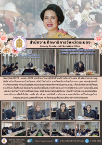 วันพฤหัสบดีที่ 29 มกราคม 2569 นางรัชดาภรณ์ ปฏิบัติ ศึกษาธิการจังหวัดระนอง เป็นประธานการประชุมผู้บริหารโรงเรียนเอกชน โดยมีนางสาวรัชนี จิตต์สว่าง รองศึกษาธิการจังหวัดระนอง บุคลากรกลุ่มส่งเสริมการศึกษาเอกชน พร้อมด้วยผู้บริหารโรงเรียนเอกชนทุกโรง เข้าร่วมการประชุม เพื่อแจ้งข้อราชการให้ทราบ รวมทั้งประเด็นที่ต้องหารือร่วมกัน อันเกี่ยวเนื่องกับการกำหนดแนวทาง การติดตาม และการขับเคลื่อนการดำเนินงานด้านการจัดการศึกษาเอกชน ให้เป็นไปอย่างมีประสิทธิภาพ เพื่อให้การดำเนินงานของโรงเรียนเอกชนในระบบเป็นไปในทิศทางเดียวกัน เกิดความเข้าใจที่ตรงกัน และสามารถดำเนินงานได้อย่างถูกต้องตามระเบียบและแนวทางที่กำหนด ณ ห้องประชุมสำนักงานศึกษาธิการจังหวัดระนอง