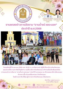 วันพฤหัสบดีที่ 9 เมษายน 2569 เวลา 18.00 น. นางรัชดาภรณ์ ปฏิบัติ ศึกษาธิการจังหวัดระนอง มอบหมายให้ นางสาวรัชนี จิตต์สว่าง รองศึกษาธิการจังหวัดระนอง เข้าร่วมเป็นเกียรติและรับฟัง การแถลงข่าวการจัดงาน “อาบน้ำแร่ แลระนอง” ประจำปี พ.ศ.๒๕๖๙ ณ บริเวณหอนาฬิกาเมืองระนอง ตำบลบางริ้น อำเภอเมืองระนอง จังหวัดระนอง โดยมี นายราชัน มีน้อย ผู้ว่าราชการจังหวัดระนอง เป็นประธาน