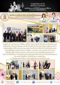 วันพุธที่ 22 เมษายน พ.ศ. 2569 นางรัชดาภรณ์ ปฏิบัติ ศึกษาธิการจังหวัดระนอง พร้อมด้วยนางธนภร คุ้มเพชร นักวิชาการศึกษาชำนาญการพิเศษ (ผู้อำนวยการกลุ่มส่งเสริมการศึกษาเอกชน) และบุคลากรสำนักงานศึกษาธิการจังหวัดระนอง ร่วมลงพื้นที่ตรวจพิจารณาความพร้อม ความเหมาะสม ของสถานที่ อาคาร หลักสูตร สื่อการเรียนการสอน วัสดุ อุปกรณ์ ในการเปลี่ยนแปลงรายการในตราสารจัดตั้งและการเปลี่ยนแปลงรายละเอียดเกี่ยวกับกิจการโรงเรียนในระบบ ประเภทสามัญศึกษา เป็นไปด้วยความเรียบร้อย ณ โรงเรียนวิณณ์วัฒนา อำเภอเมืองระนอง จังหวัดระนอง