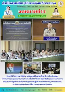 วันพุธที่ 27 ธันวาคม 2566 นางณันศภรณ์ นิลอรุณ ศึกษาธิการจังหวัดระนอง เข้าร่วมการประชุมคณะกรมการจังหวัด ครั้งที่ 12/2566 เพื่อหารือข้อราชการและรับทราบนโยบายการปฏิบัติ รวมถึงรับทราบปัญหาการปฏิบัติงานองค์กรภาครัฐ และภาคเอกชน ณ ห้องประชุมรัตนรังสรรค์ ชั้น 5 ศาลากลางจังหวัดระนอง