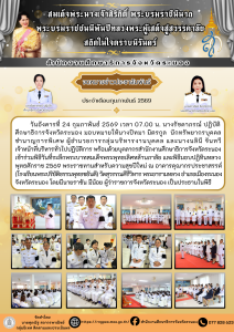 วันอังคารที่ 24 กุมภาพันธ์ 2569 นางรัชดาภรณ์ ปฏิบัติ ศึกษาธิการจังหวัดระนอง มอบหมายให้ นางปัทมา มิตรกูล นักทรัพยากรบุคคลชำนาญการพิเศษ ผู้อำนวยการกลุ่มบริหารงานบุคคล นางนลินี จันทวี เจ้าหน้าที่บริหารทั่วไปปฏิบัติการ และบุคลากรสำนักงานศึกษาธิการจังหวัดระนอง เข้าร่วมพิธีวันที่ระลึกพระบาทสมเด็จพระพุทธเลิศหล้านภาลัย และพิธีมอบปฏิทินหลวง พุทธศักราช 2569 พระราชทานสำหรับความสุขปีใหม่ ณ อาคารคุณากรประชาสรรค์ (โรงเรียนพระปริยัติธรรมพุทธชยันตี) วัดสุวรรณคีรีวิหาร พระอารามหลวง อำเภอเมืองระนอง จังหวัดระนอง โดยมีนายราชัน มีน้อย ผู้ว่าราชการจังหวัดระนอง เป็นประธานในพิธี