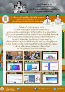 วันอังคารที่ 24 มีนาคม พ.ศ. 2569 นางรัชดาภรณ์ ปฏิบัติ ศึกษาธิการจังหวัดระนอง มอบหมายให้นางธนภร คุ้มเพชร นักวิชาการศึกษาชำนาญการพิเศษ ผู้อำนวยการกลุ่มส่งเสริมการศึกษาเอกชน เข้าร่วมอบรมพัฒนาศักยภาพด้านการออกแบบประสบการณ์การเรียนรู้อย่างมีประสิทธิภาพด้วย Canva for Education ผ่านโปรแกรม Zoom Meeting เพื่อเสริมสร้างความรู้ ความเข้าใจในการออกแบบสื่อการเรียนรู้ที่มีความน่าสนใจ ทันสมัย และสามารถนำความรู้ที่ได้รับไปประยุกต์ใช้ในการพัฒนางานด้านการศึกษาและการส่งเสริมการจัดการเรียนรู้ของสถานศึกษาเอกชนได้อย่างเหมาะสม