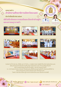 วันอังคารที่ 31 มีนาคม 2569 เวลา 07.30 น. นางรัชดาภรณ์ ปฏิบัติ ศึกษาธิการจังหวัดระนอง พร้อมด้วยบุคลากรสำนักงานศึกษาธิการจังหวัดระนอง เข้าร่วมพิธีวันที่ระลึกพระบาทสมเด็จพระนั่งเกล้าเจ้าอยู่หัว พระมหาเจษฎาราชเจ้า ณ อาคารคุณากรประชาสรรค์ (โรงเรียนพระปริยัติธรรมพุทธชยันตี) วัดสุวรรณคีรีวิหาร พระอารามหลวง อำเภอะเมืองระนอง จังหวัดระนอง โดยมี นายราชัน มีน้อย ผู้ว่าราชการจังหวัดระนอง เป็นประธานในพิธ