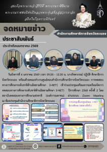 วันอังคารที่ 6 มกราคม 2569 เวลา 09.00 – 12.00 น. นางรัชดาภรณ์ ปฏิบัติ ศึกษาธิการจังหวัดระนอง พร้อมด้วยคณะทำงานศูนย์สอบสำนักงานศึกษาธิการจังหวัดระนอง การทดสอบทางการศึกษระดับชาติด้านอิสลามศึกษา (I-NET) เข้าร่วมประชุมเตรียมความพร้อมจัดการทดสอบทางการศึกษาระดับชาติด้านอิสลามศึกษา (I-NET) ปีการศึกษา 2568 ครั้งที่ 2 โดยสถาบันทดสอบทางการศึกษาแห่งชาติ (องค์การมหาชน) ผ่านระบบ Zoom Meeting ณ ห้องประชุมสำนักงานศึกษาธิการจังหวัดระนอง